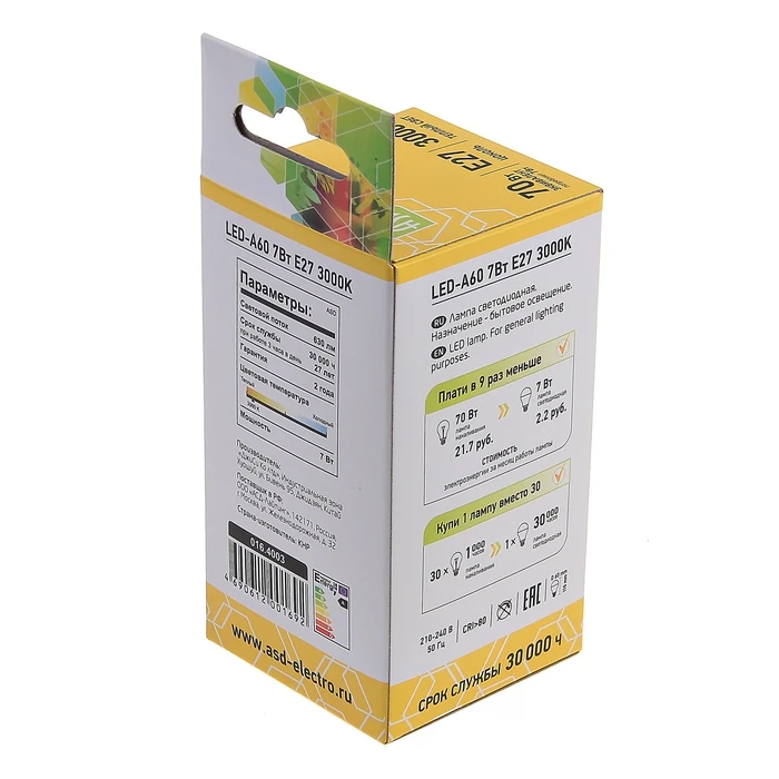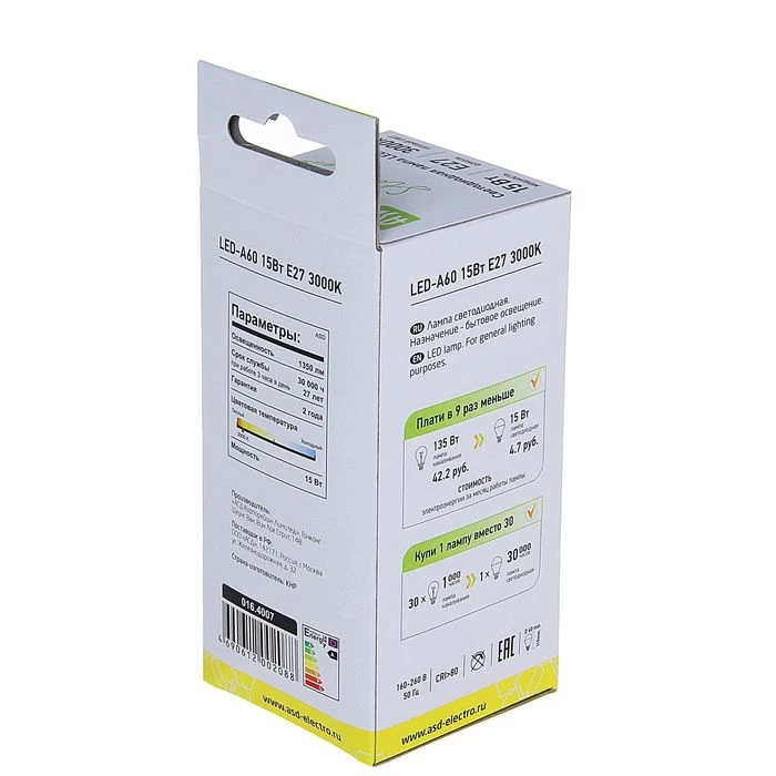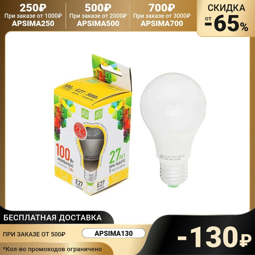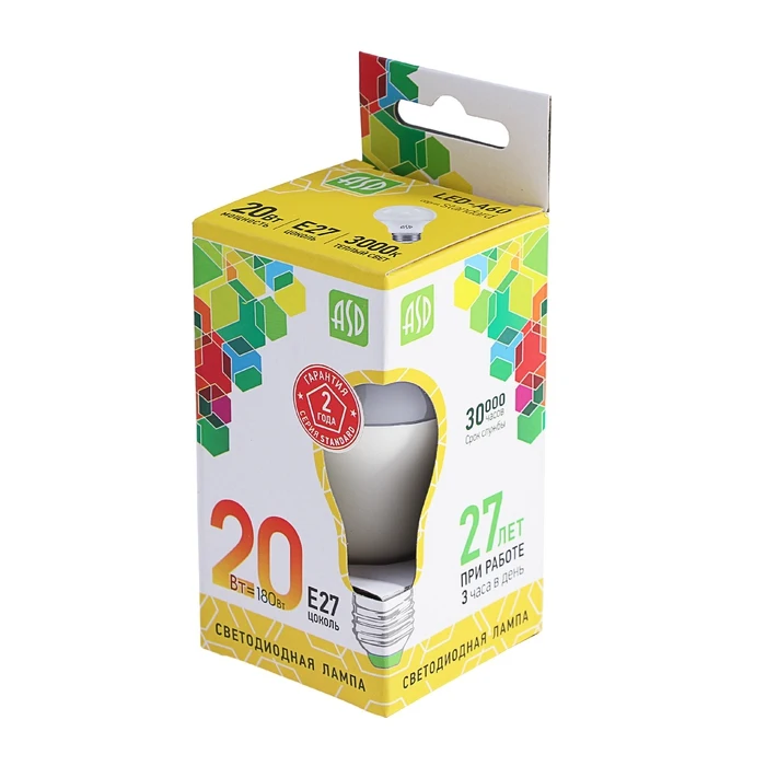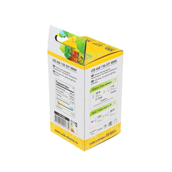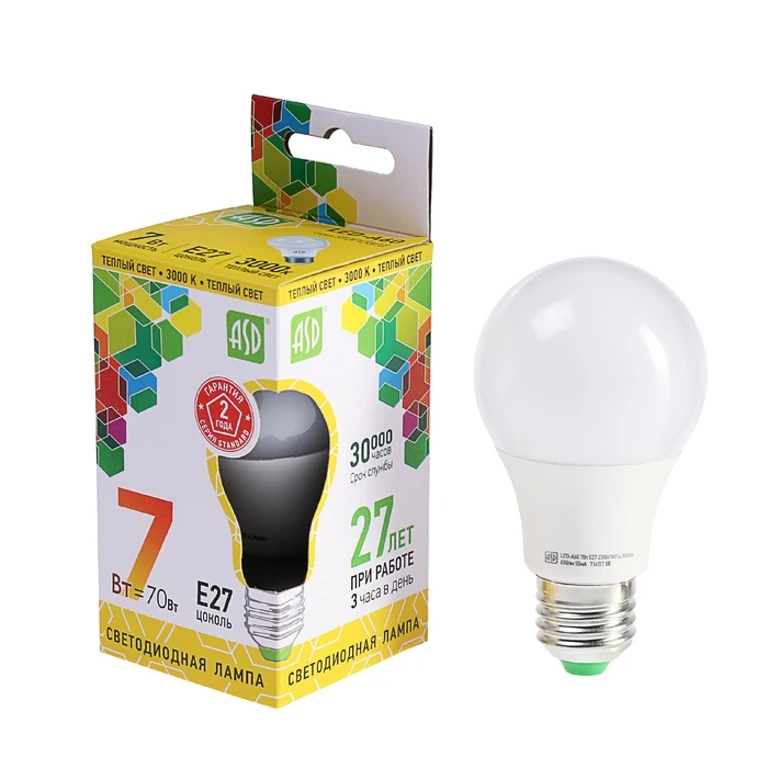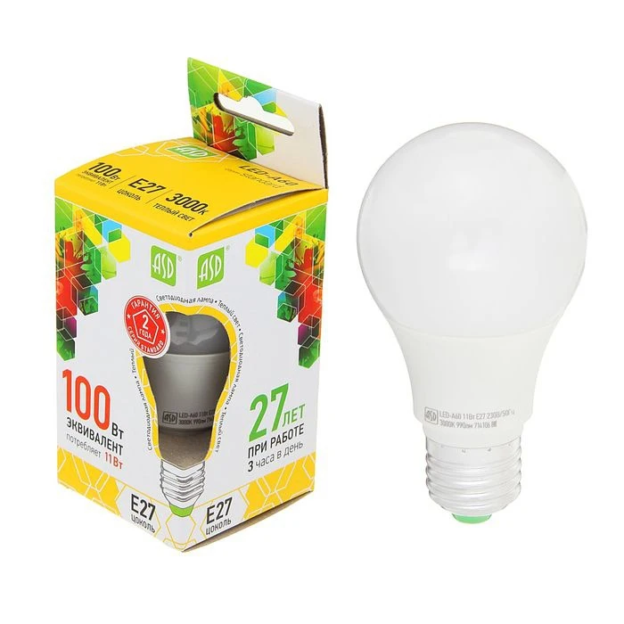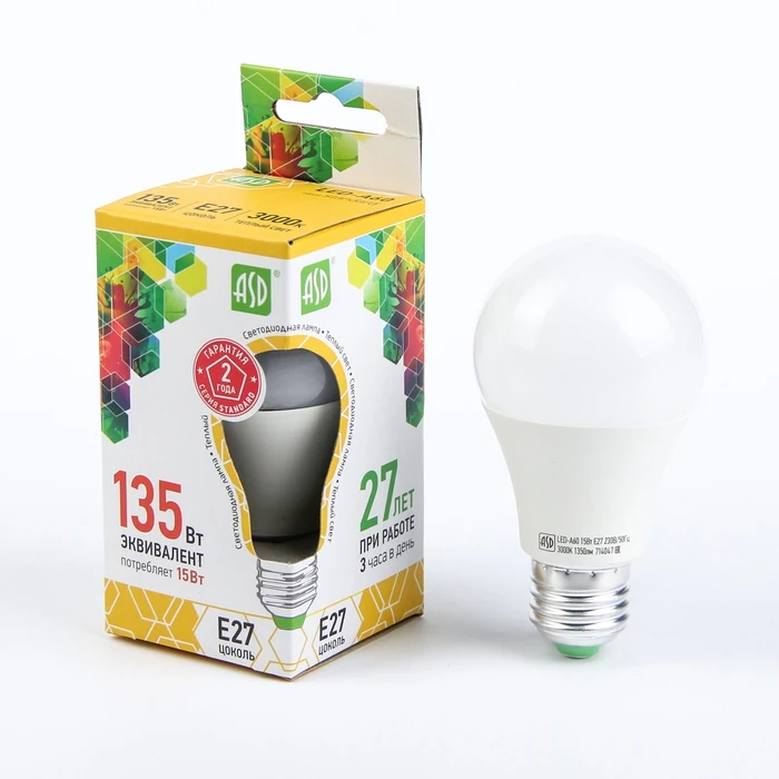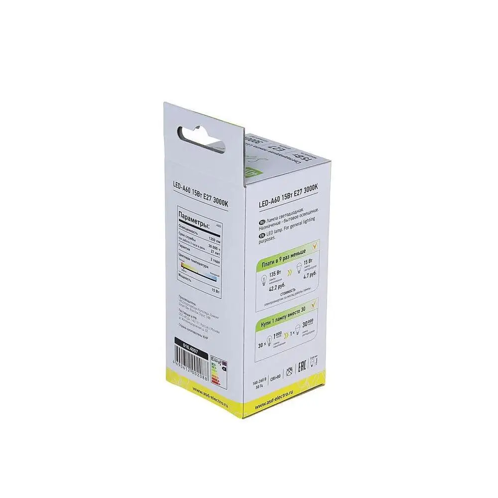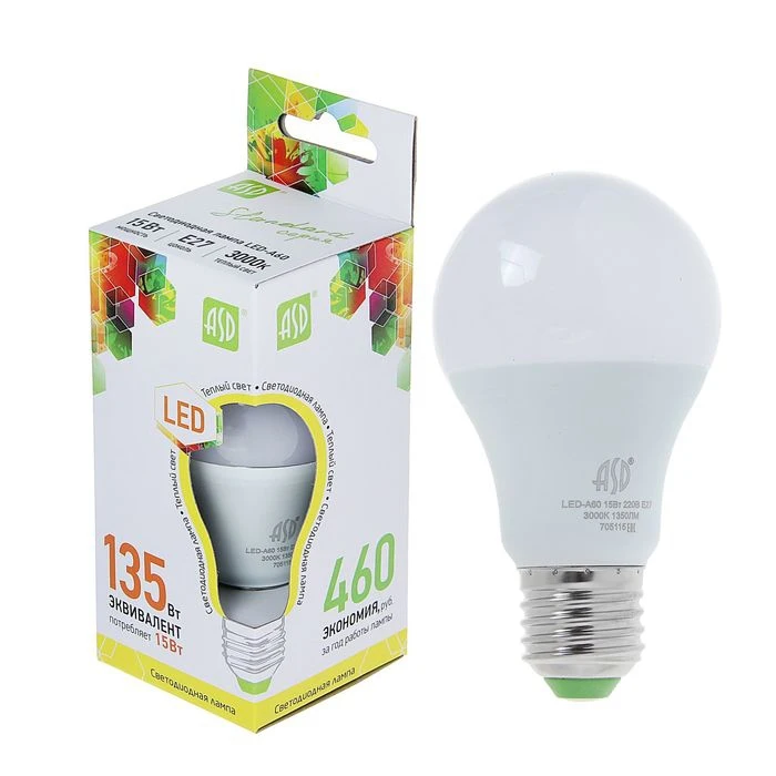 Лампа светодиодная ASD LED-A60-standard, Е27, 230 В