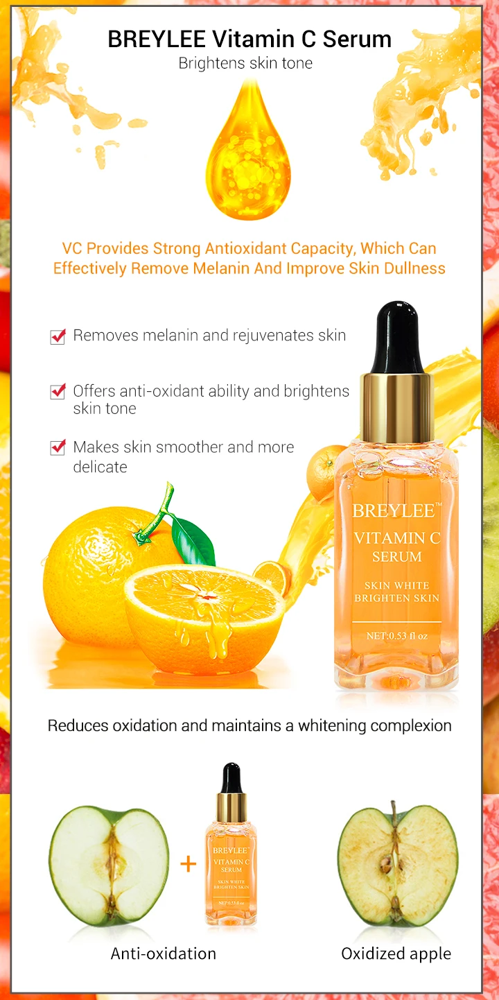 Сыворотка BREYLEE с витамином C, отбеливающая эссенция для лица, удаление веснушек, увлажнение, улучшение сухости, антиокисление, уход за кожей