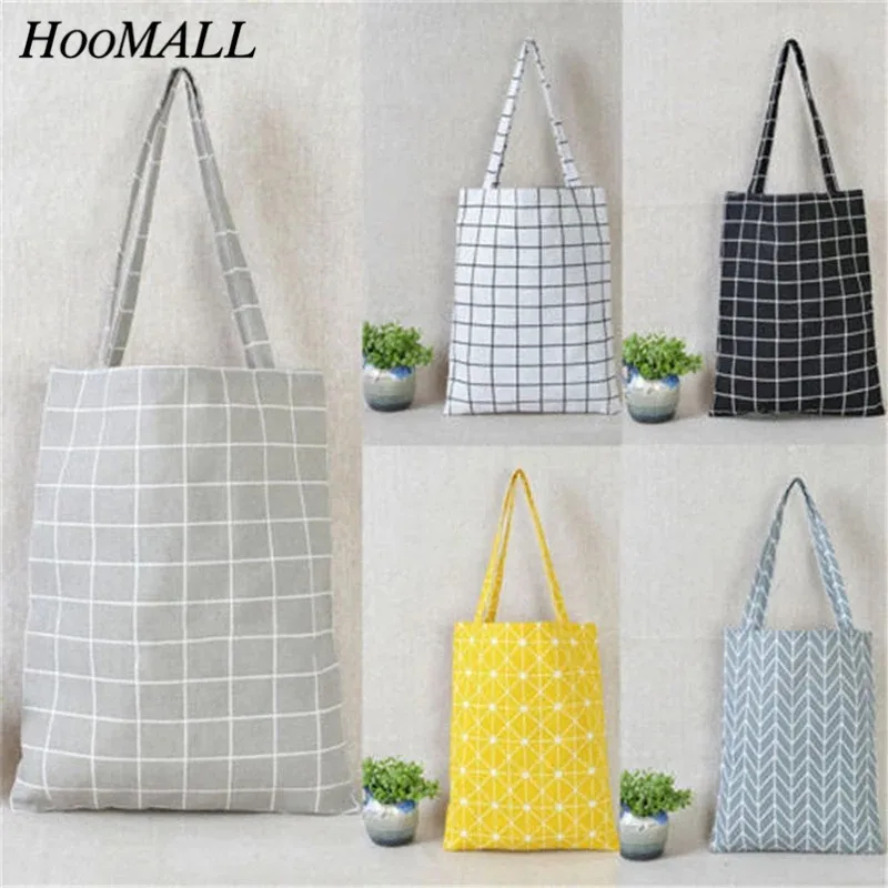 Женская сумка для покупок 5 цветов, клетчатая льняная хлопчатобумажная Холщовая Сумка для покупок, Экологически чистая Складная портативная сумка-тоут для продуктов
