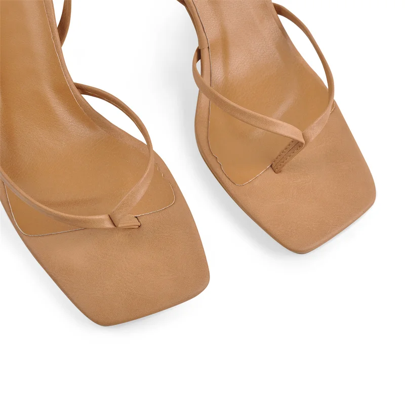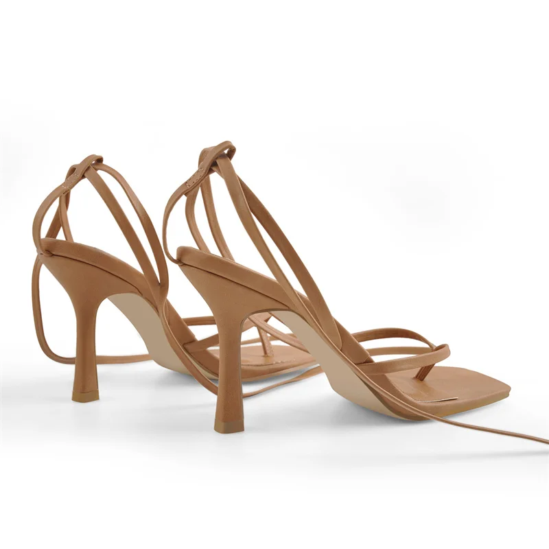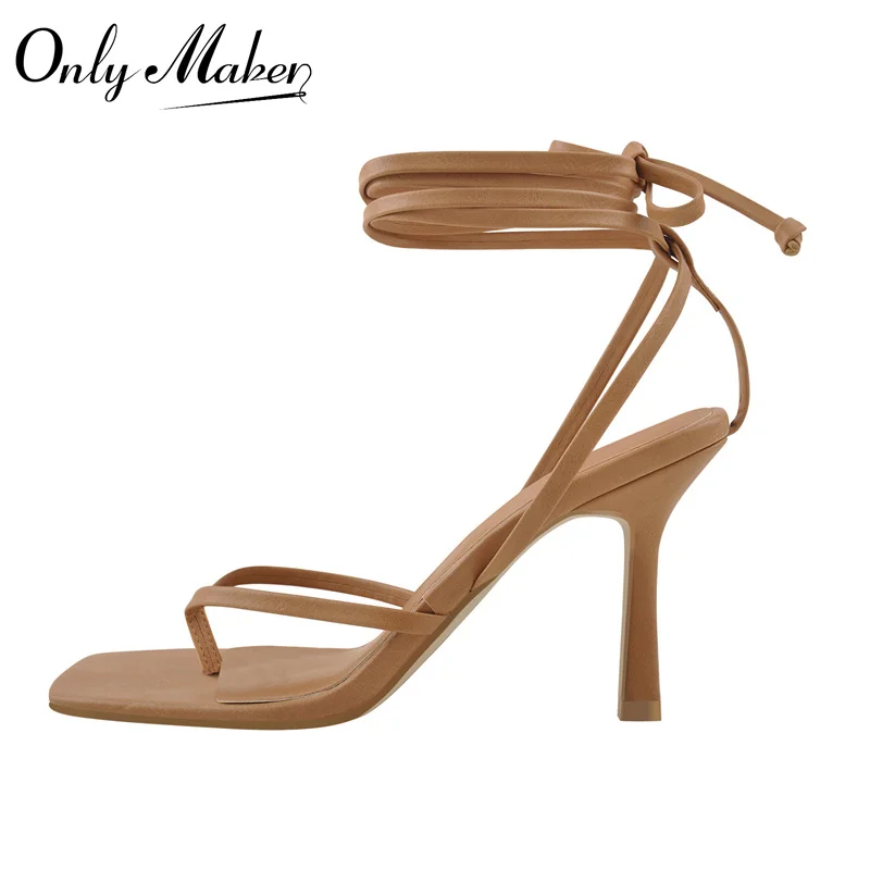 Женские босоножки Onlymaker на шнуровке с квадратным носком, матовые коричневые шлепанцы на высоком каблуке-шпильке с ремешком на щиколотке для лета, модная выразительная обувь