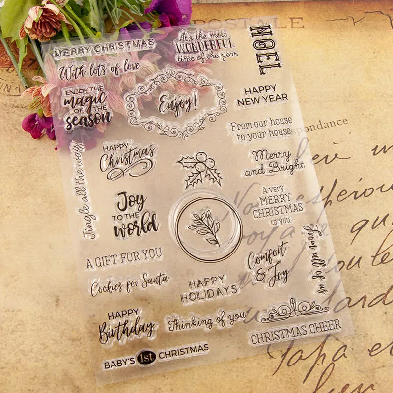Новый год резиновый штамп английские слова Силиконовая печать фотоа...