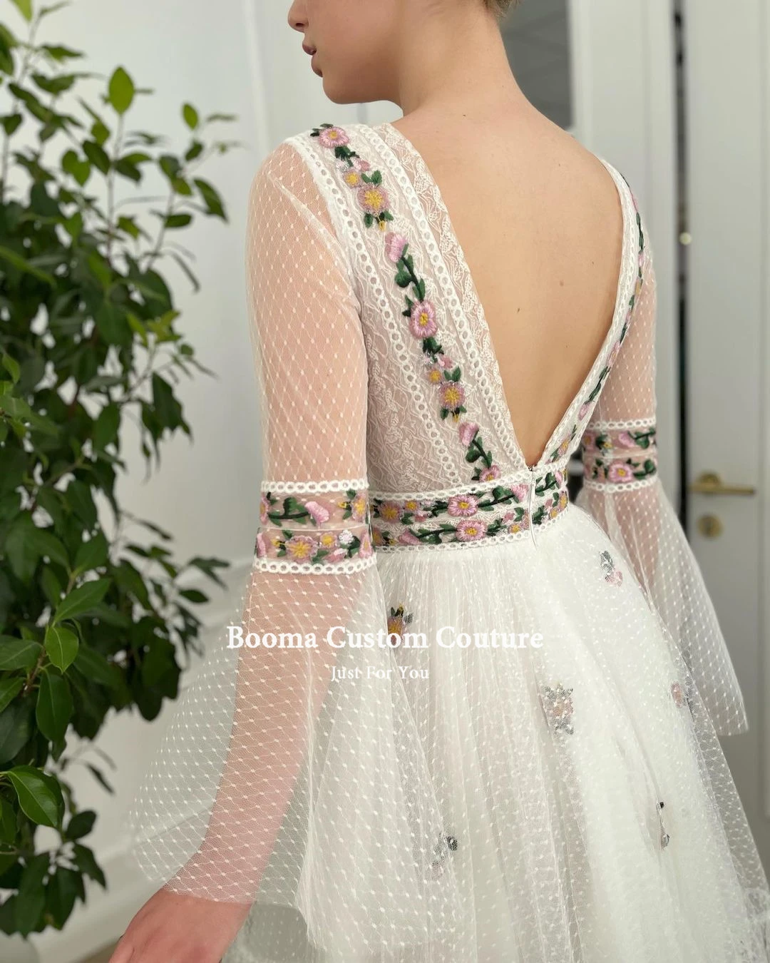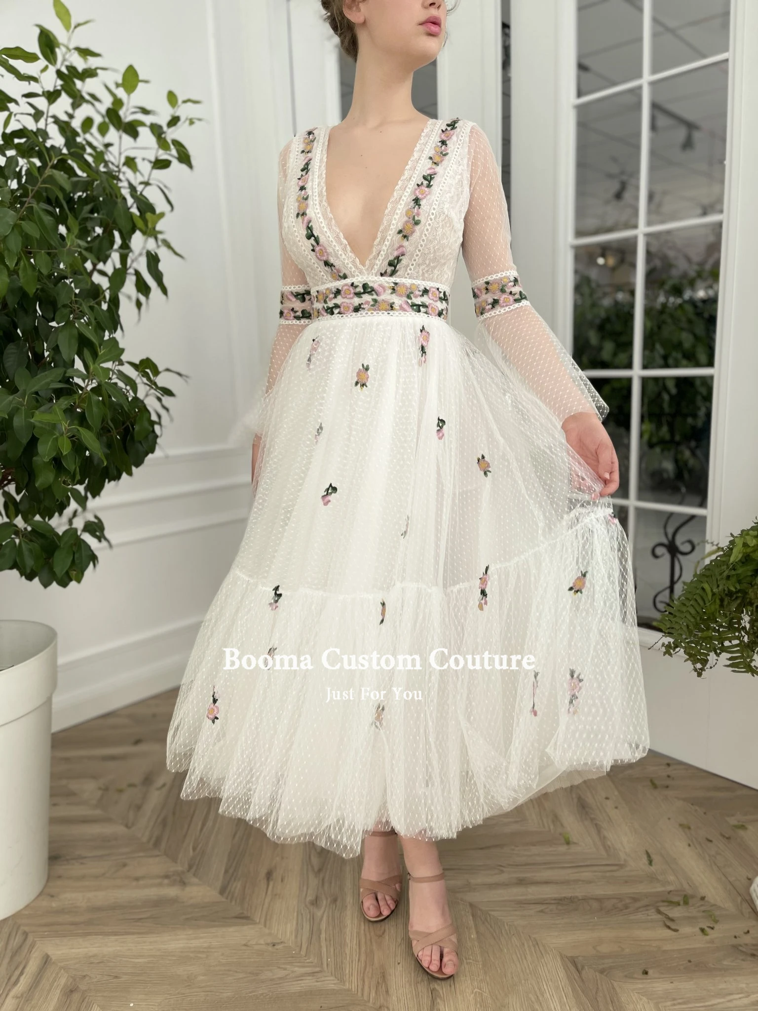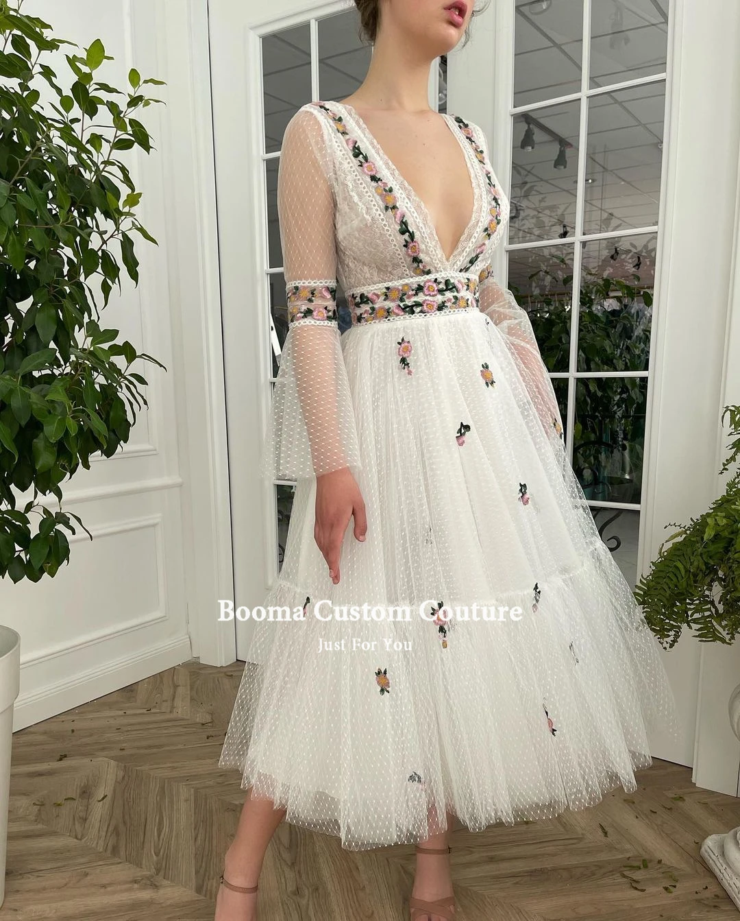Платье-миди из тюля с V-образным вырезом и длинным рукавом