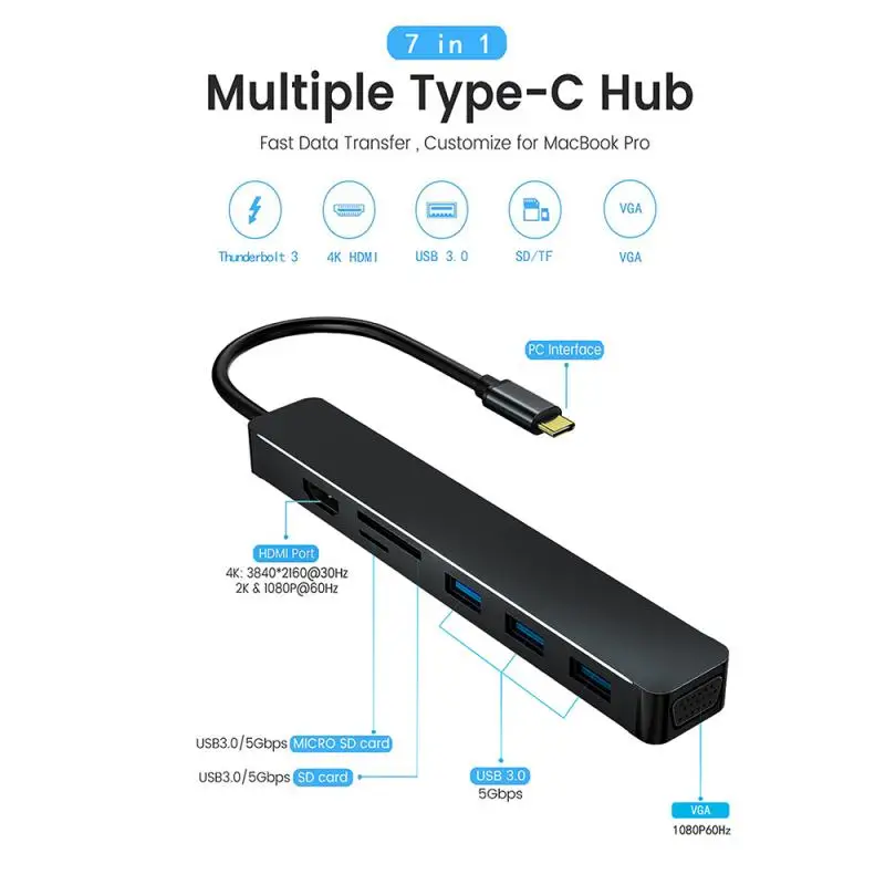 Док-станция 7-в-1 с разъемом Type-C и поддержкой разрешения 4K