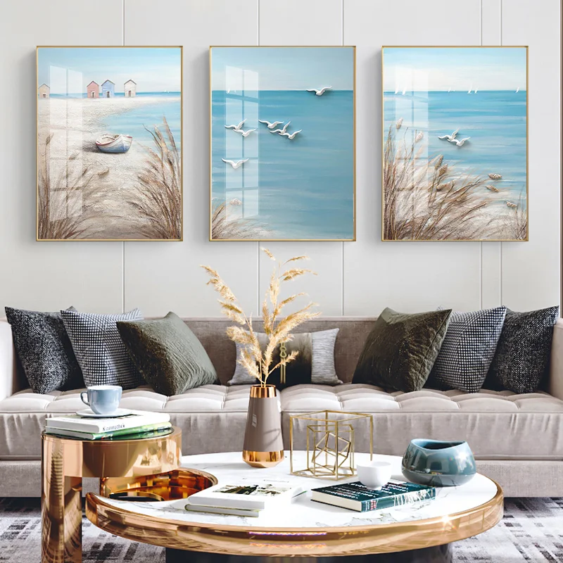 Простой и современный европейский арт, морской Пляжный Пейзаж, гостиная, крыльцо, настенный постер, печать картины Декоративная Картина на холсте