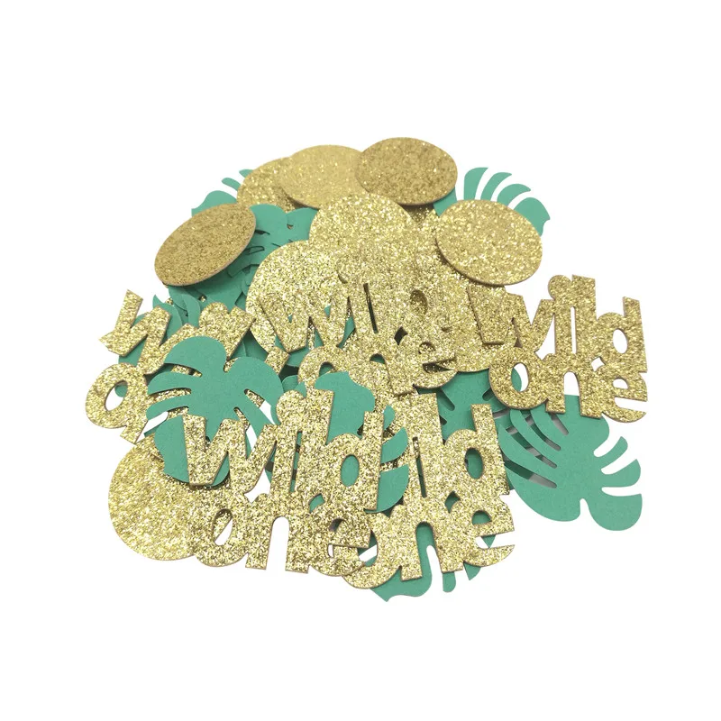 Gold Black Paper Wild One Turtle Leaf Confetti Happy Birthday Jung...