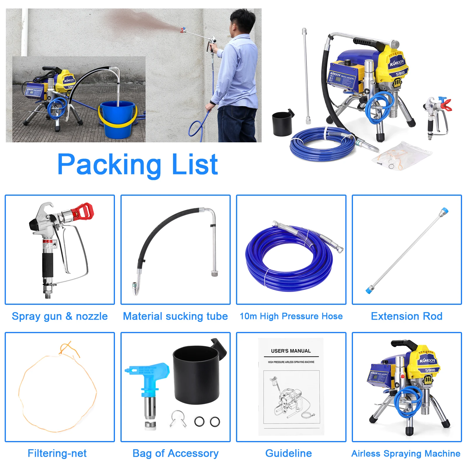 KKmoon 1800 Вт Аэрограф высокого давления безвоздушный распылитель машина для распыления краски Электрический распылитель краски инструмент для внутренней подачи краски
