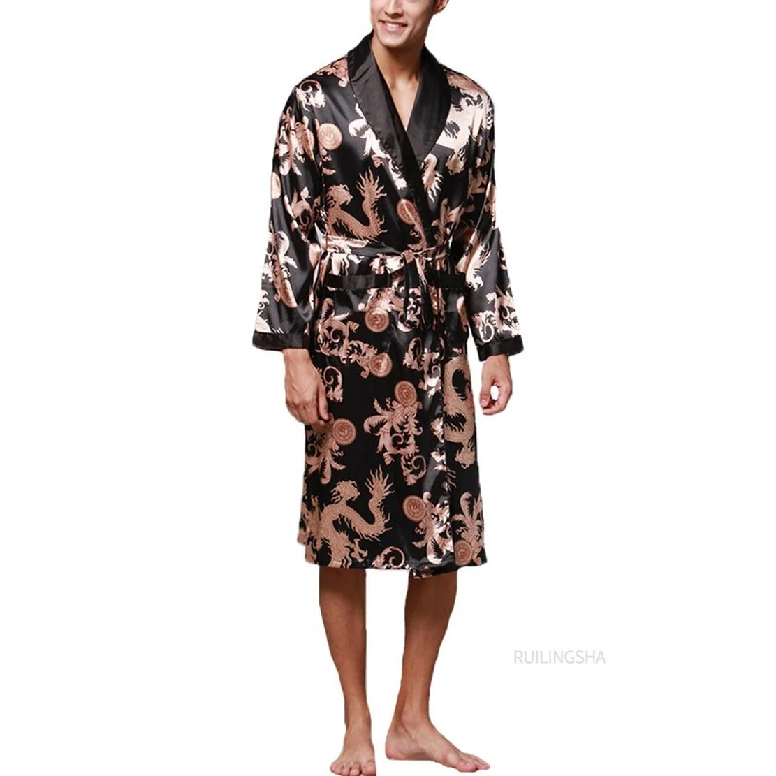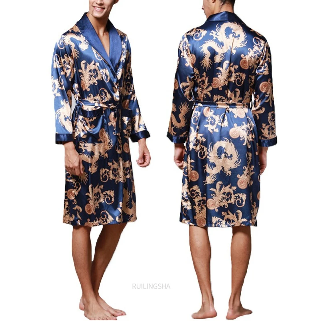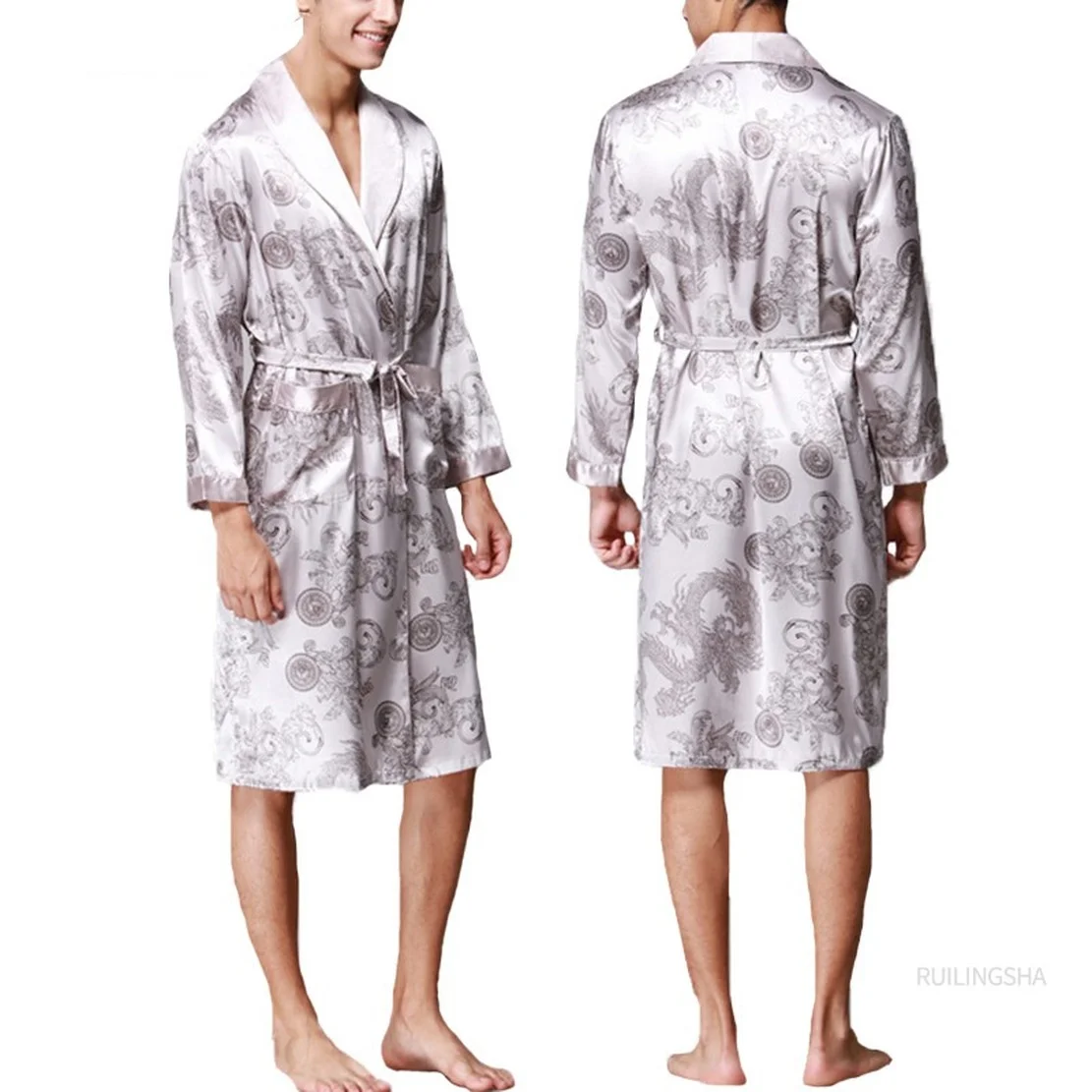 Халат-кимоно Baijinbai мужской с длинным рукавом, шелковый халат с принтом китайского счастливого дракона, пижама, халат, домашняя одежда