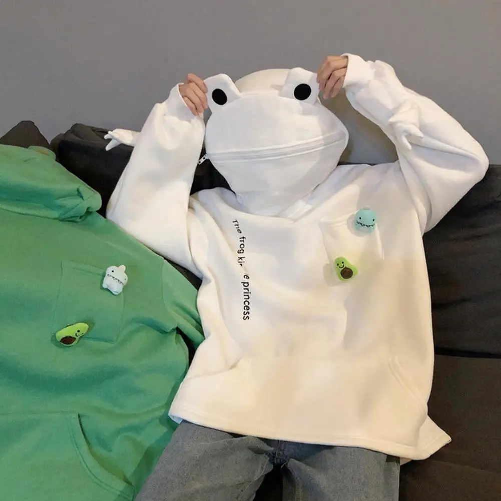 Женская толстовка в виде лягушки, пуловер с длинным рукавом и капюшоном в животном стиле, топы, Свитшот в Корейском стиле с передним карманом, милый стиль в виде животного