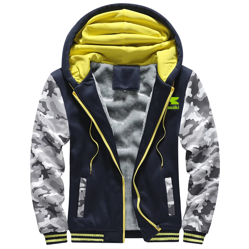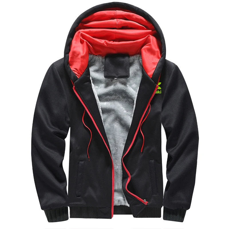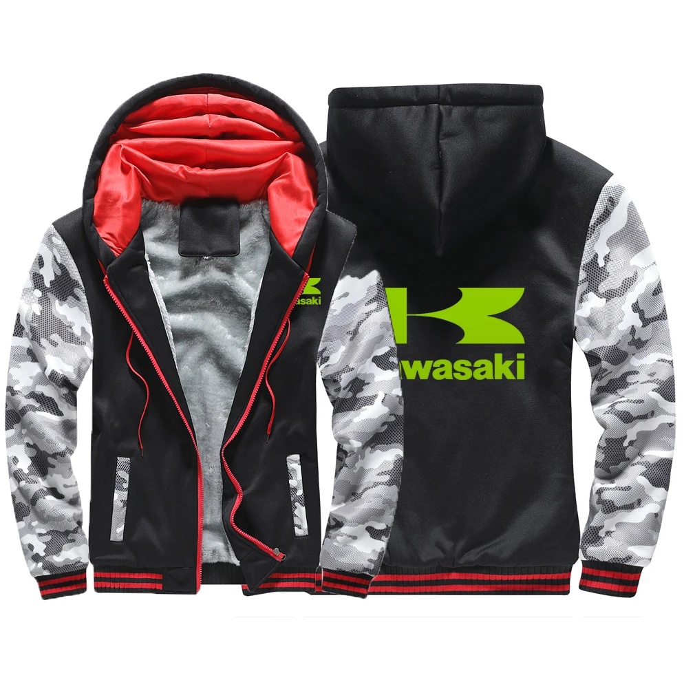 Толстовки с принтом Кавасаки, повседневная утепленная Вельветовая куртка на молнии, верхняя одежда, зима 2021