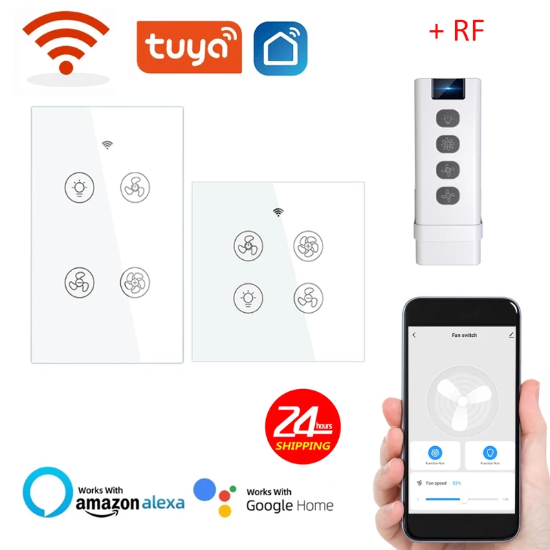 Умный выключатель для потолочного вентилятора Tuya, Wi-Fi, RF, управление через приложение Smart LifeTuya, беспроводной настенный выключатель с дистанционным управлением, работает с Alexa и Google