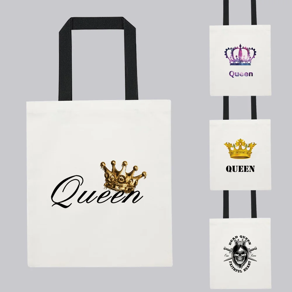 Сумки для женщин, многоразовые сумки-шопперы в стиле Харадзюку, сумки большой емкости, серия сумок для покупок с принтом королевы, короны