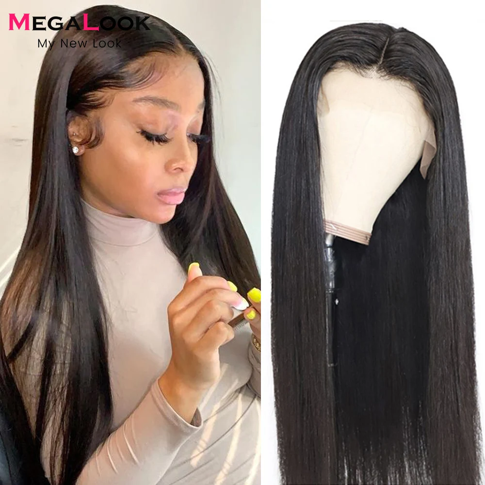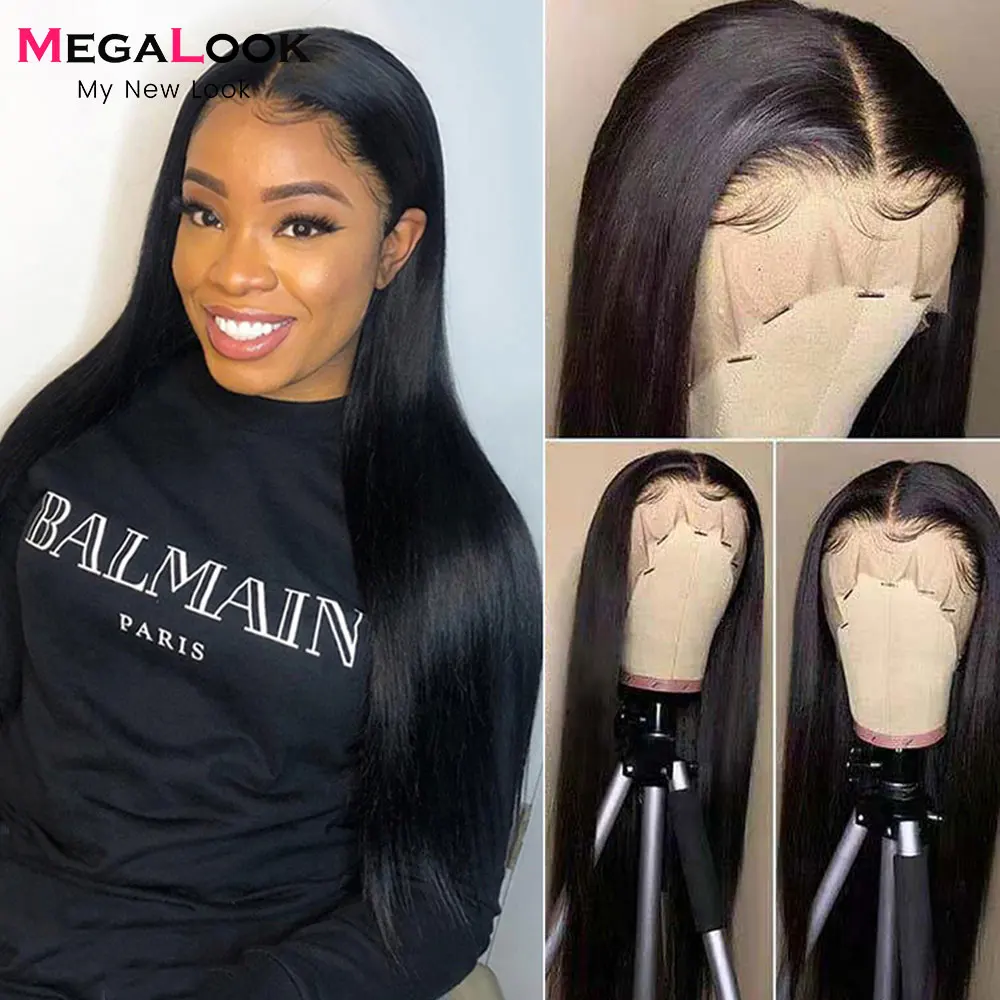 Парик Megalook из человеческих волос с застежкой 4x4, парик с прямы...