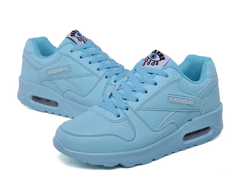 Кроссовки женские из экокожи, спортивная обувь на воздушной подушке, синие, белые, розовые, для прогулок и бега