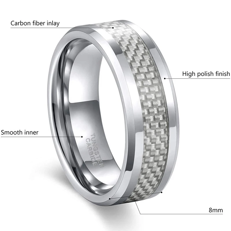 Мужские и женские кольца из карбона вольфрама, 6 мм, 8 мм