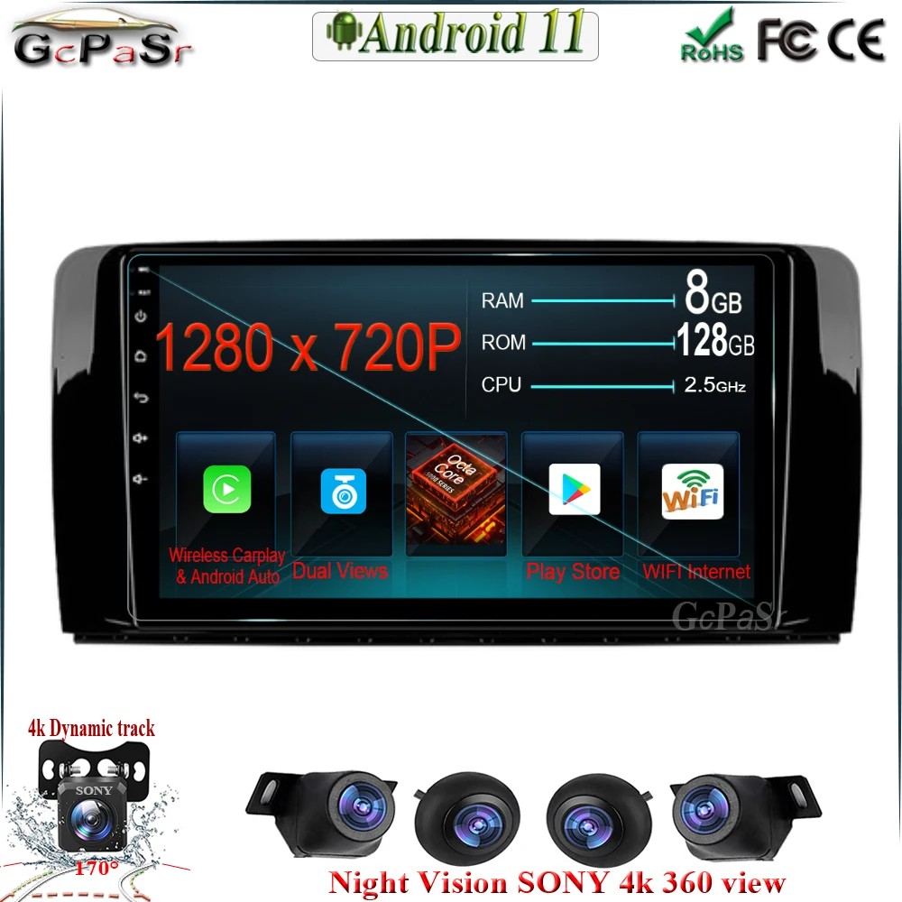 Android 11 для Mercedes Benz Class R W251 R280 R300 R320 R350 R63 2006-2013, мультимедийный видеопроигрыватель для авто GPS