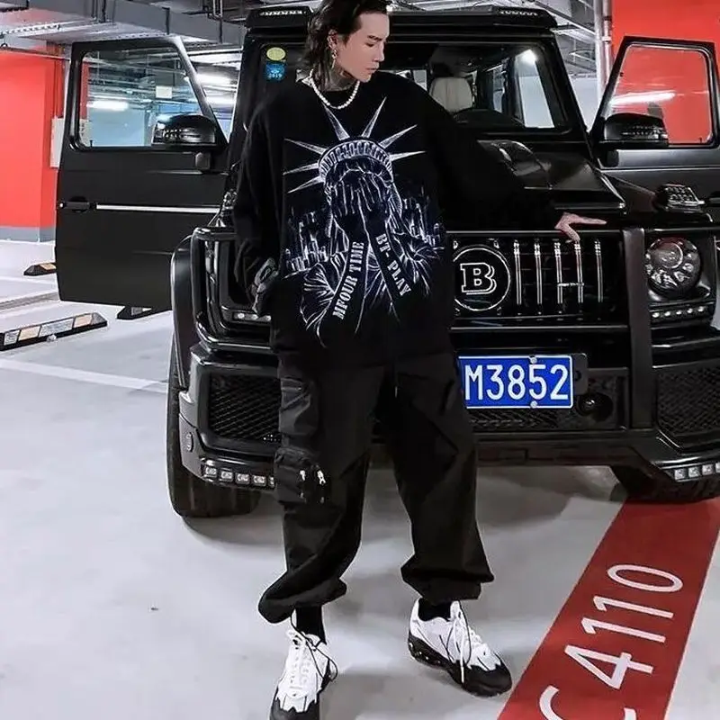 Брюки-карго мужские с большими карманами, свободная уличная одежда ...