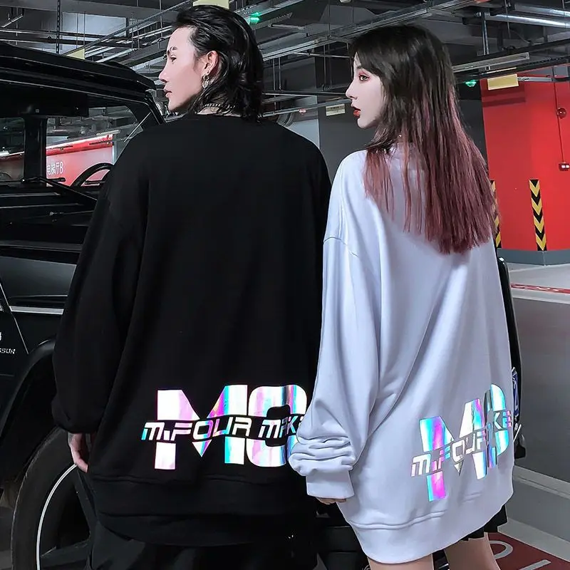 Толстовка мужская с длинным рукавом, свитшот для пар, Красивая свободная Светоотражающая одежда в Корейском стиле, модное пальто в стиле хип-хоп для мужчин и женщин, весна-осень