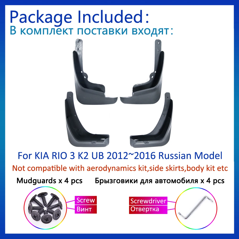 Для KIA RIO 3 K2 UB 2012 ~ 2016 Русская модель автомобиля Mudflap 4x крыло брызговиков Стайлинг Аксессуары Новое обновление защита от брызг щитка 2012 2013 2014 2015 2016