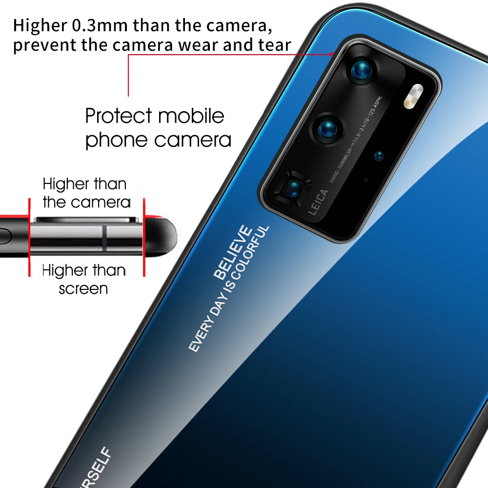 Градиентный чехол из закаленного стекла для Huawei P20 Pro P50 P40 ...