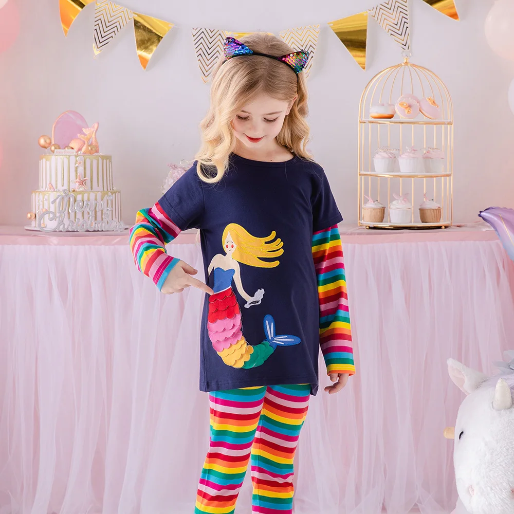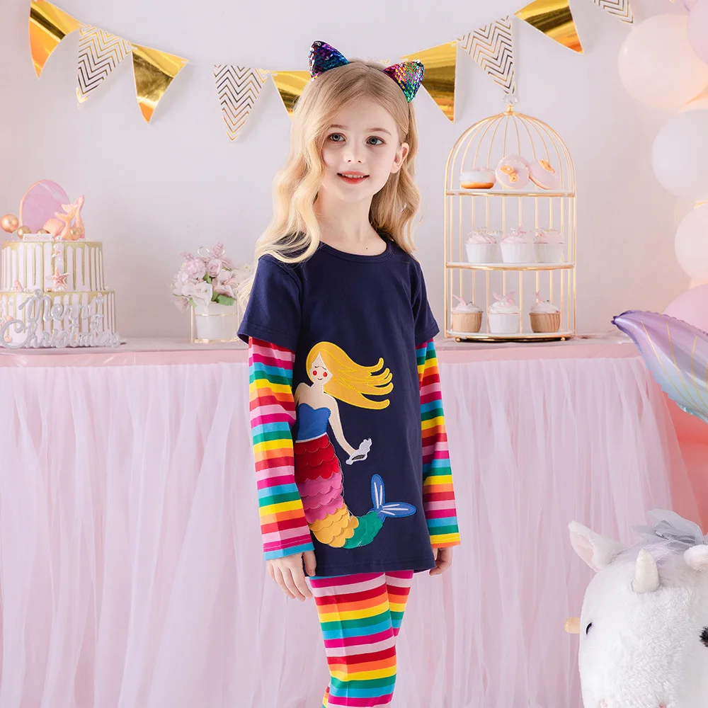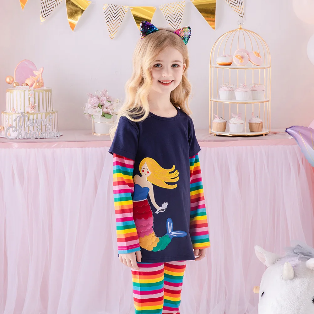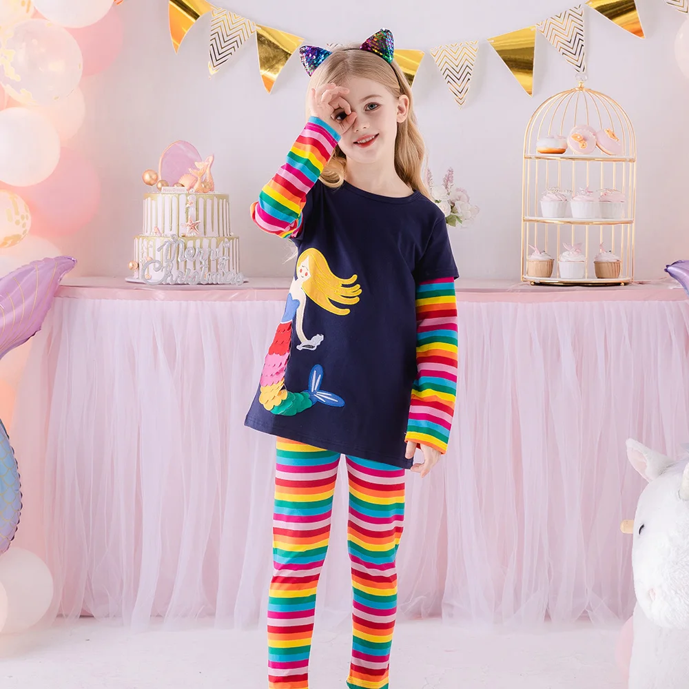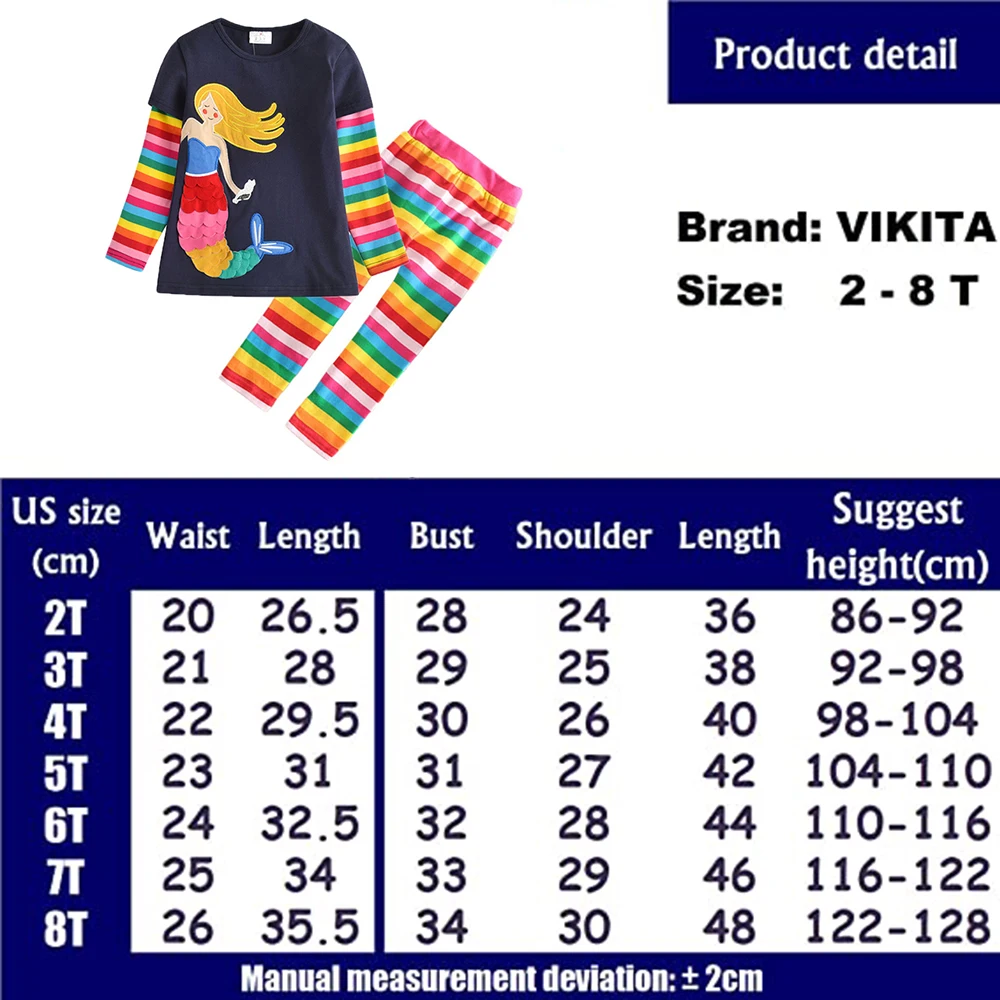 VIKITA для детей, одежда для сна, для детей ясельного возраста одежда для сна, пижамные комплекты детская одежда для дома, одежда для сна с длинными рукавами Хлопковое платье с радугой комплект полосатая Пижама, пижамный комплект в полоску