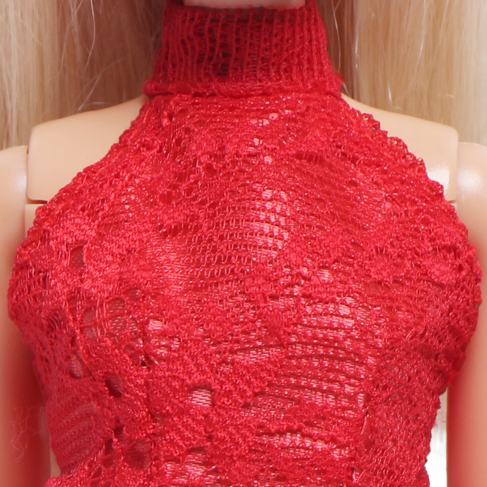1 элегантная красная кружевная кукла BJDBUS, платье без бретелек, одежда для свадебной вечеринки, юбка, бальное платье, аксессуары, Одежда для куклы Барби