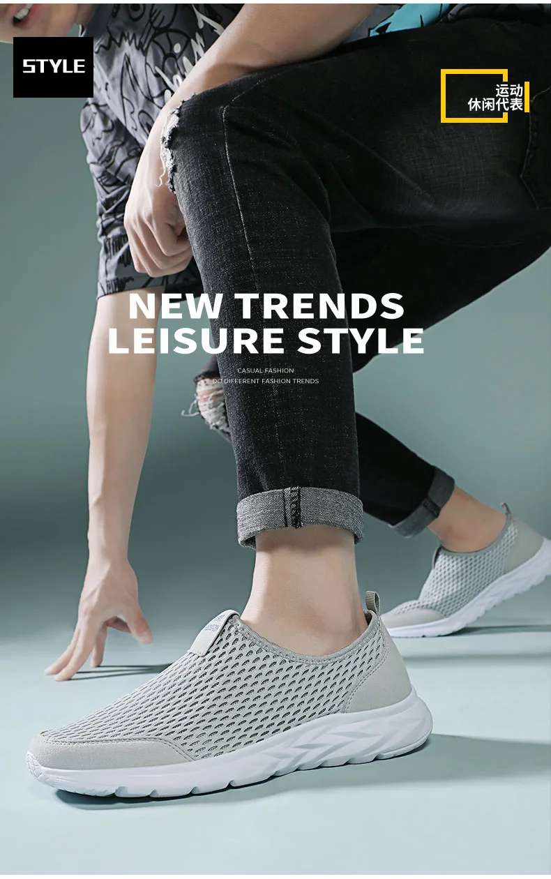 Кроссовки мужские сетчатые без шнуровки, дышащие Сникерсы для прогулок, удобная Легкая повседневная обувь на плоской подошве, лето 2021