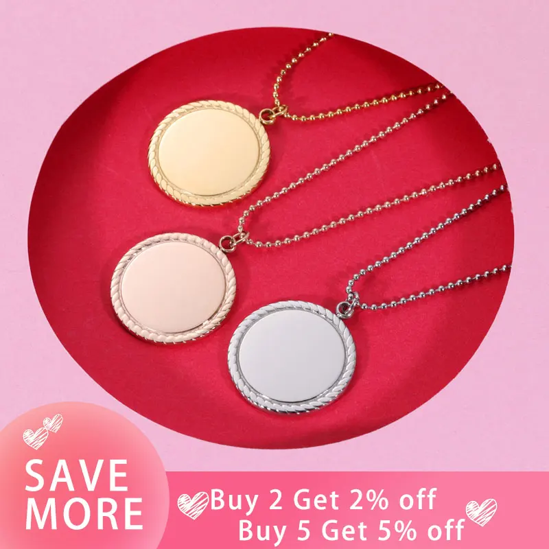 Fnixtar, 10 шт., 25 мм, круглые диски, подвеска, ожерелье, цепочка из нержавеющей стали с шариками, ожерелье для сделай сам, логотип на заказ, женский подарок для влюбленных