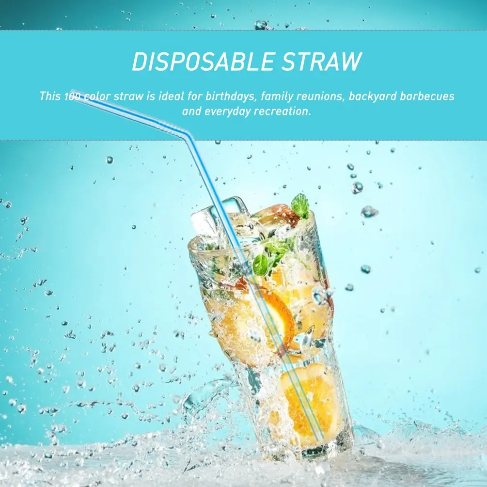 Disposable Plastic Straws Multi-Color SCelebration Party Supplies