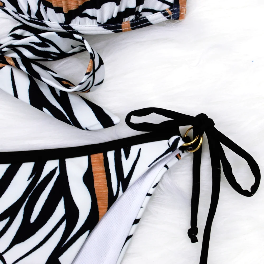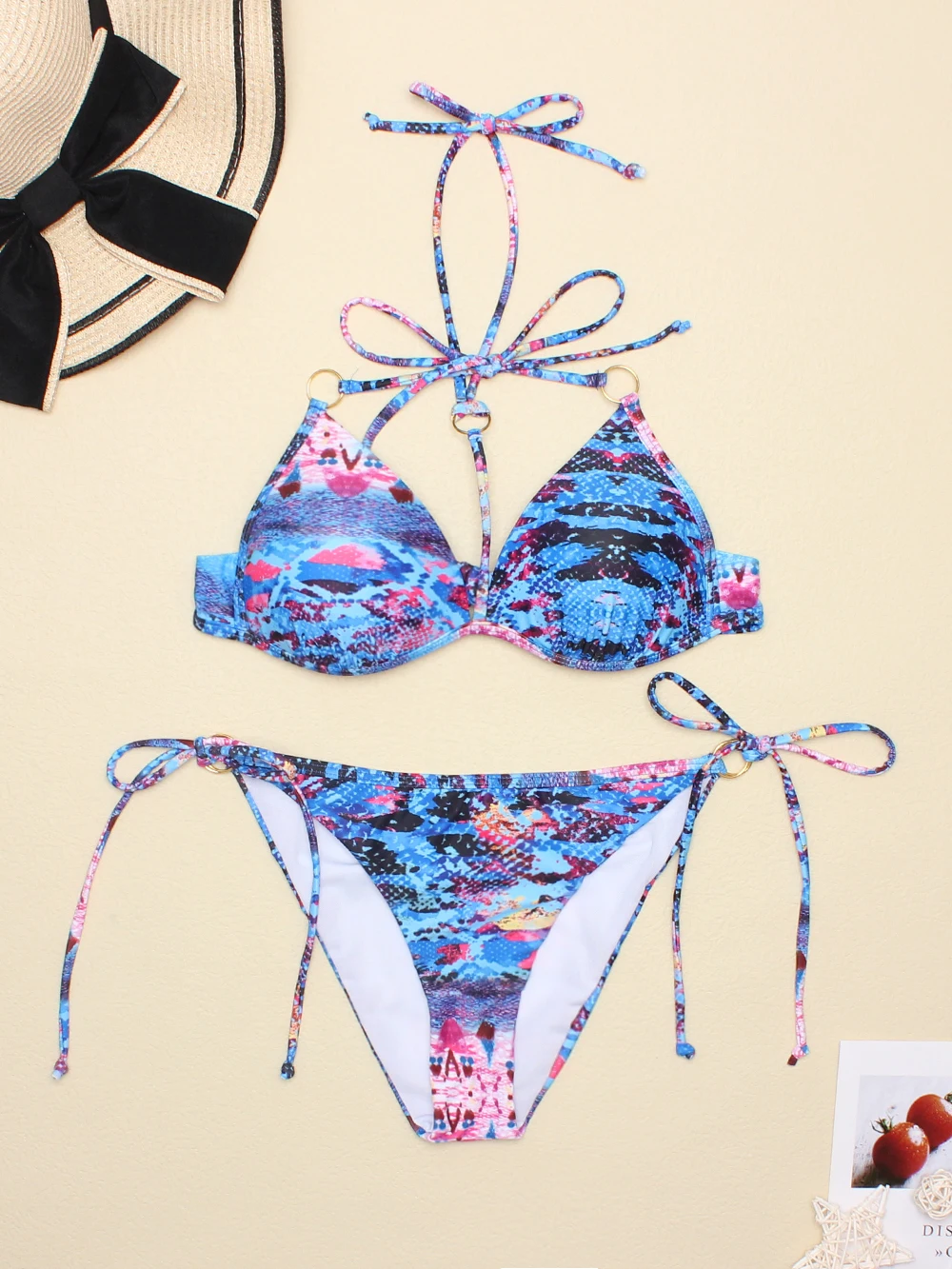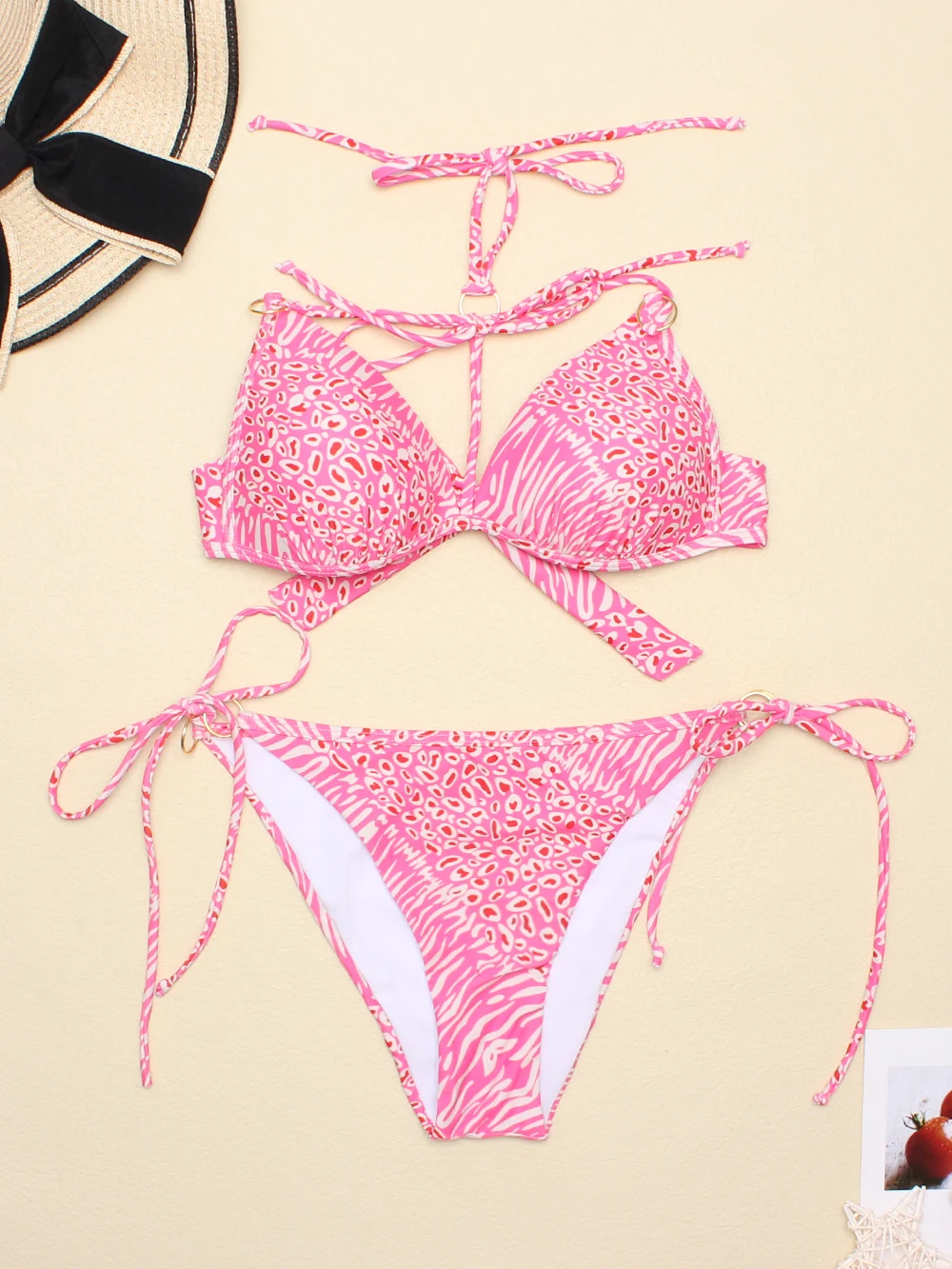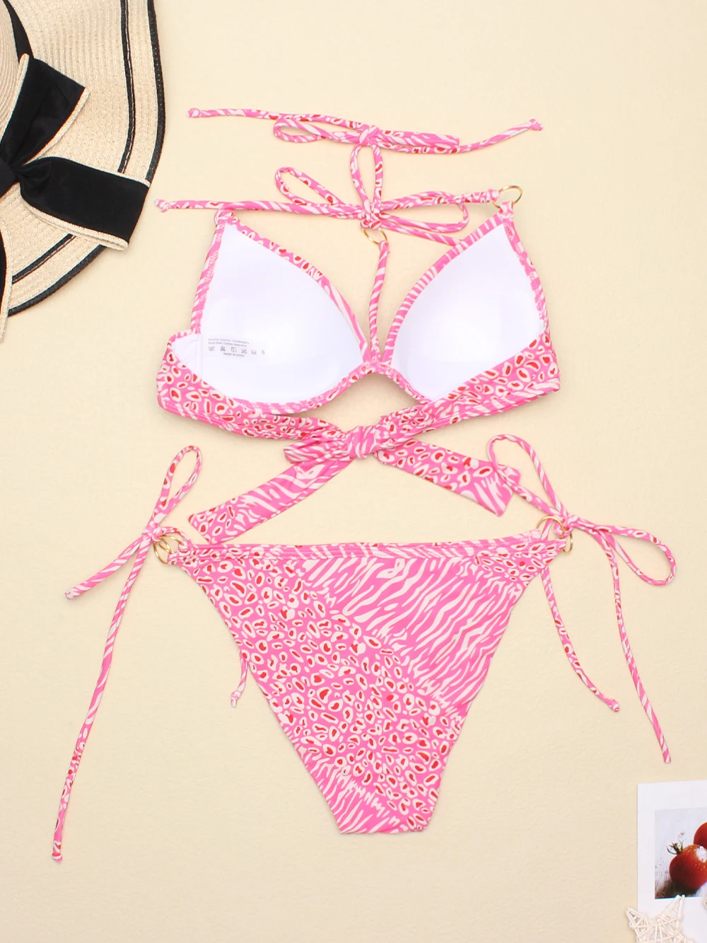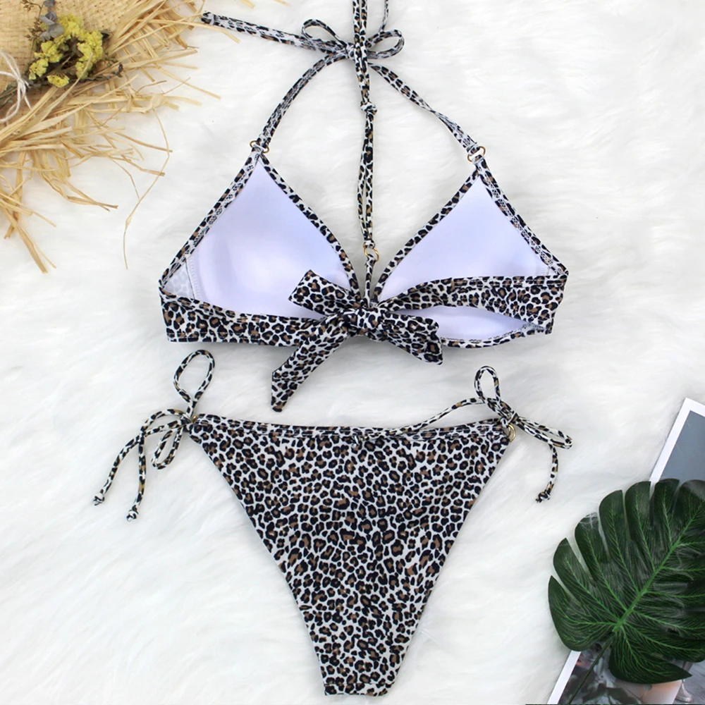 Летние комплекты бикини, женский купальник с принтом, купальник, сексуальная пляжная одежда с лямкой на шее, купальные костюмы с открытой спиной, Размеры S XXL
