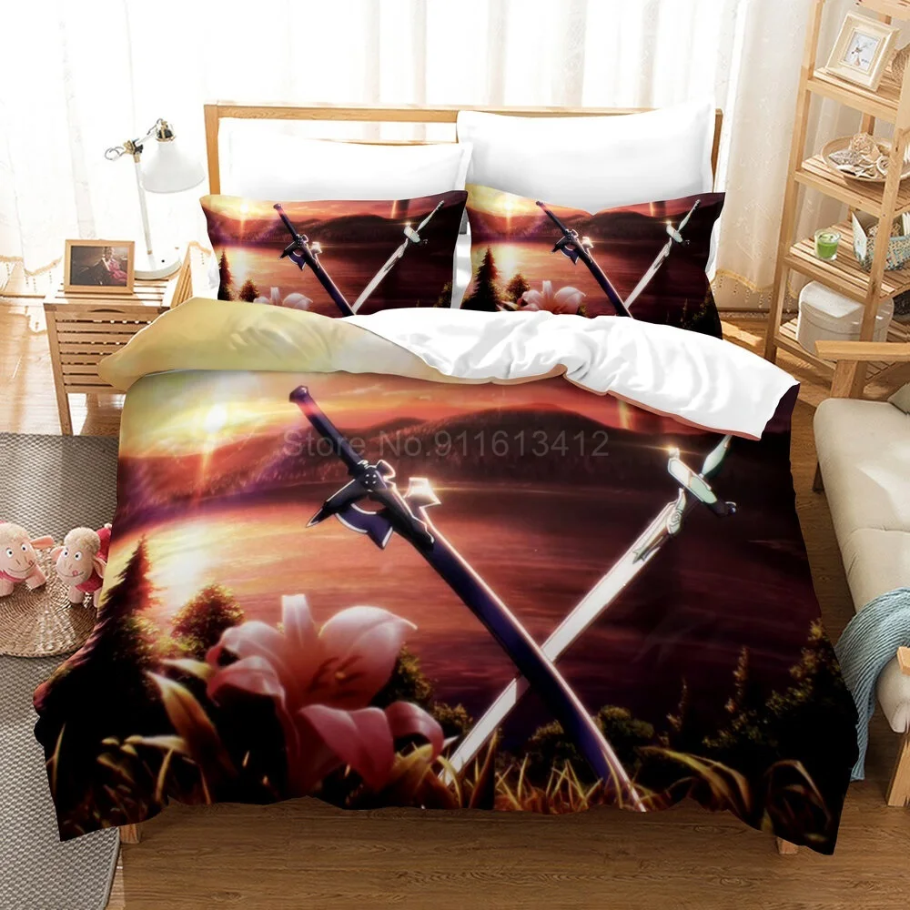 Набор постельного белья в стиле аниме SAO, набор пододеяльников с изображением меча, набор пододеяльников, пододеяльник для близнецов, королев, один размер, домашний декор, детский подарок с героями мультфильмов
