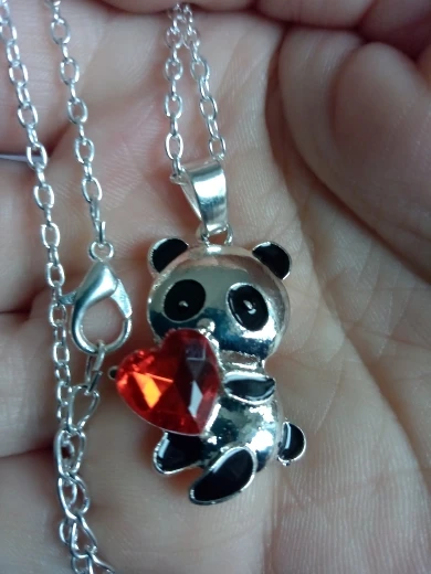 Красивый, супер. Лучше, как в описании. Красивая Длинная цепочка, регулируемая и стабильная. Медведь с пандой имеет идеальный размер и красиво блестит. О доставке нужно сказать, что очень точно было еще раньше, потому что, как мы планировали.