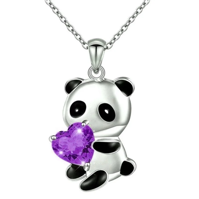 Очаровательное ожерелье в форме сердца, панда из фиолетового циркона, Женский ошейник-цепочка, подарок