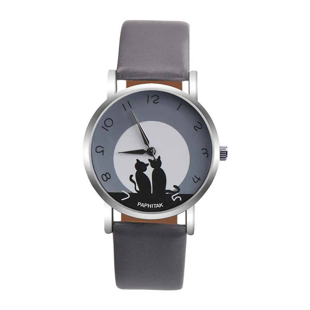Женская обувь PAPHITAKАналоговые кварцевые часы с милым котом из искусственной кожи