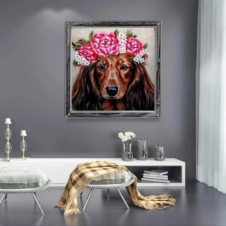 Алмазов картина собака 5D DIY Алмазная вышивка цветок Стразы мозаик...