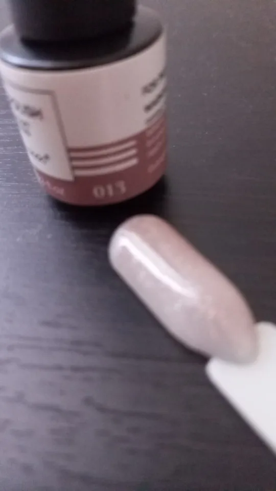 Лак прибыл раньше указанного срока, в отдельной упаковке. Нужно наносить его очень тонким слоем, иначе сложно распределять по ногтевой пластине. Цвет соответсвует, присутствует перламутровый блеск, но сам лак достаточно прозрачный. Чтобы его было видно, нужно наносить три слоя. Хорош для френча, нюдового маникюра. Жаль, что не обнаружила нигде сроков годности лака