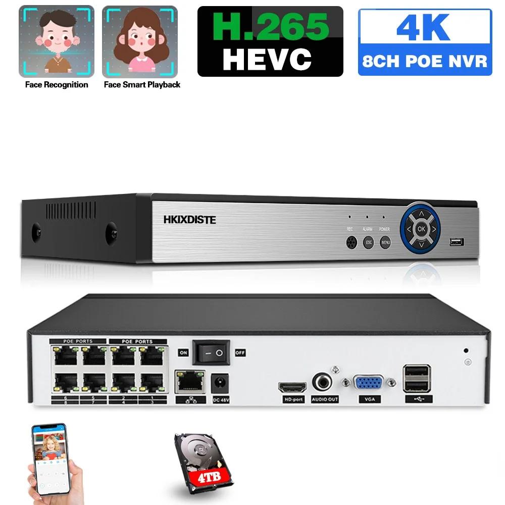 Видеорегистратор 4K POE NVR IP, 4-канальный сетевой видеорегистрато...