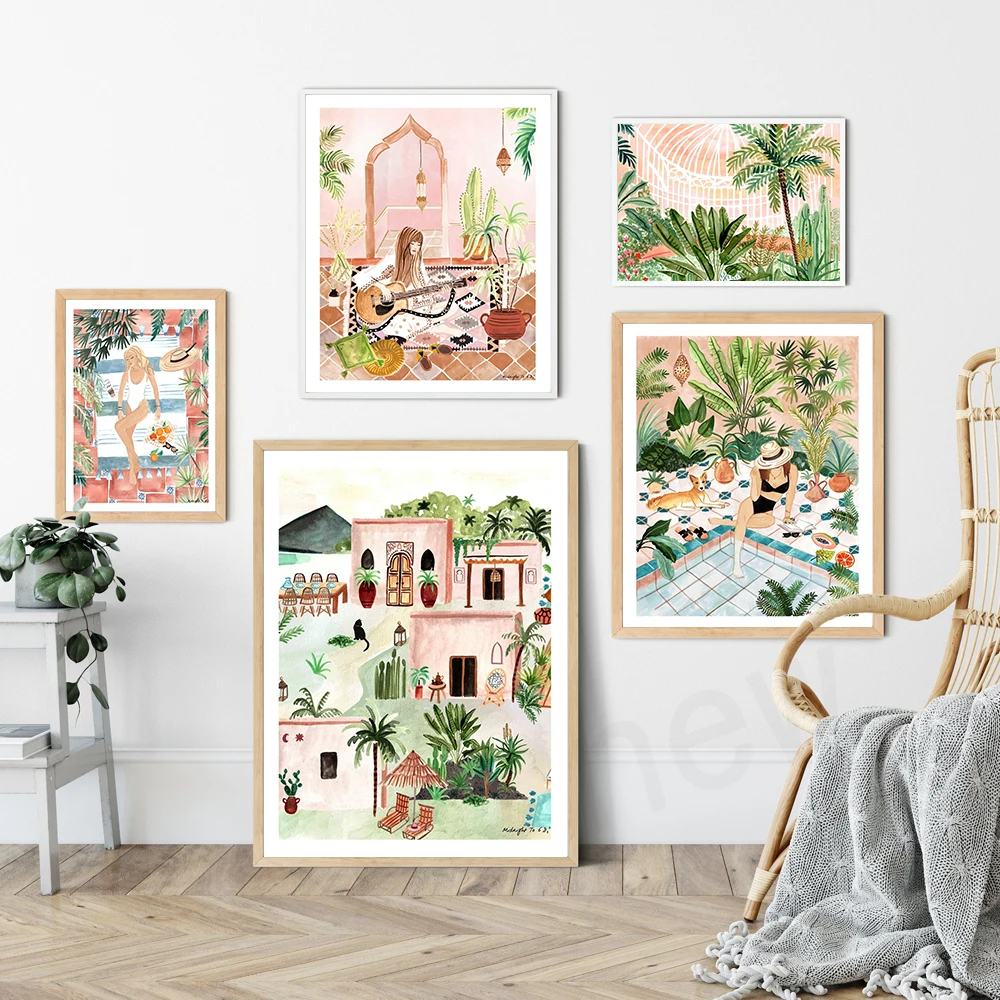 Скандинавский марокканский пейзаж, холст, постер, португальская дверь, абстрактное растение, Настенная картина, художественная живопись, Виктория, украшение для спальни, картина