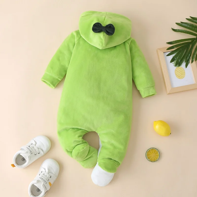 Флисовый комбинезон PatPat с аппликацией в виде авокадо, с капюшоном, с длинным рукавом, детский зеленый комбинезон