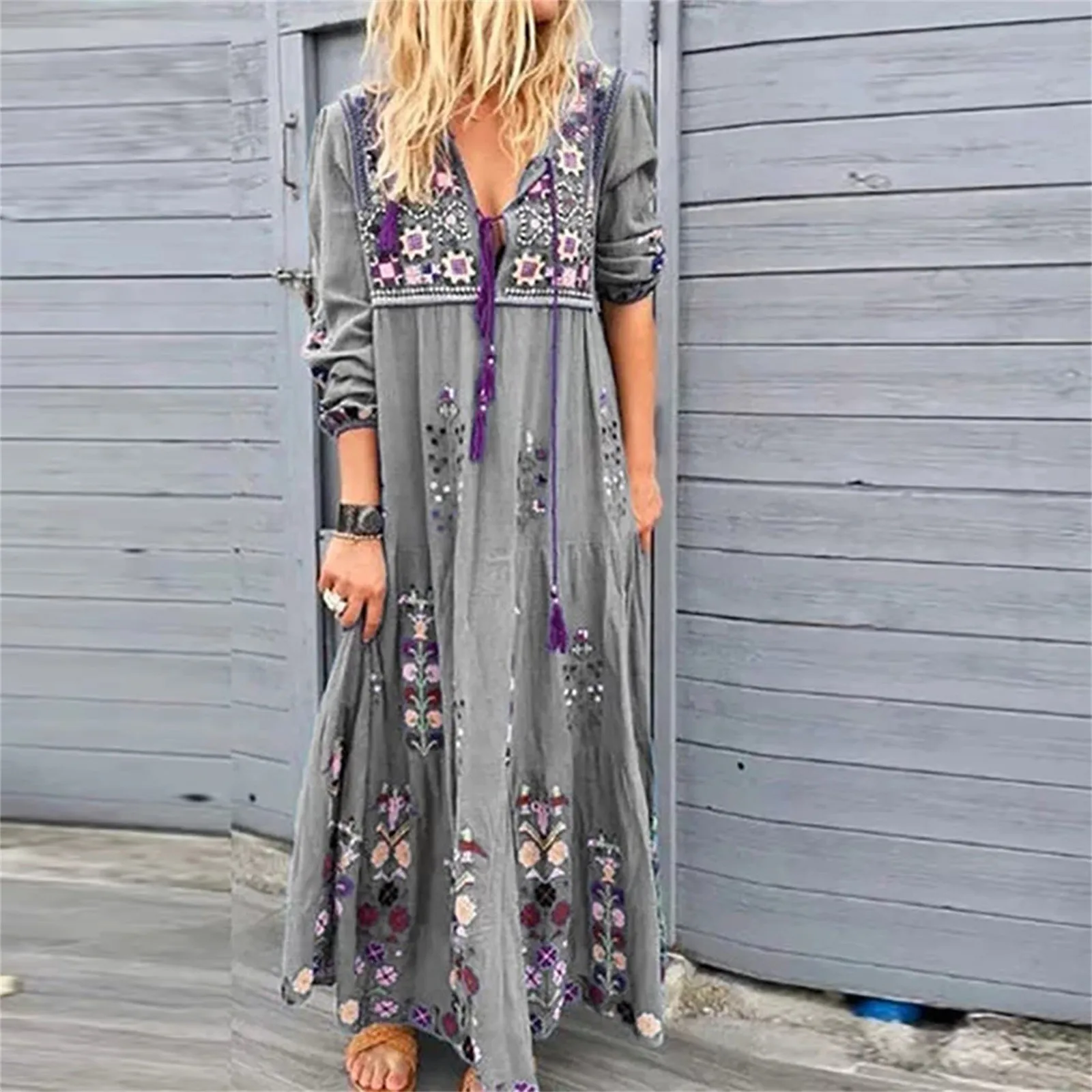 Женское пляжное платье макси, в этническом стиле, с цветочным принт...