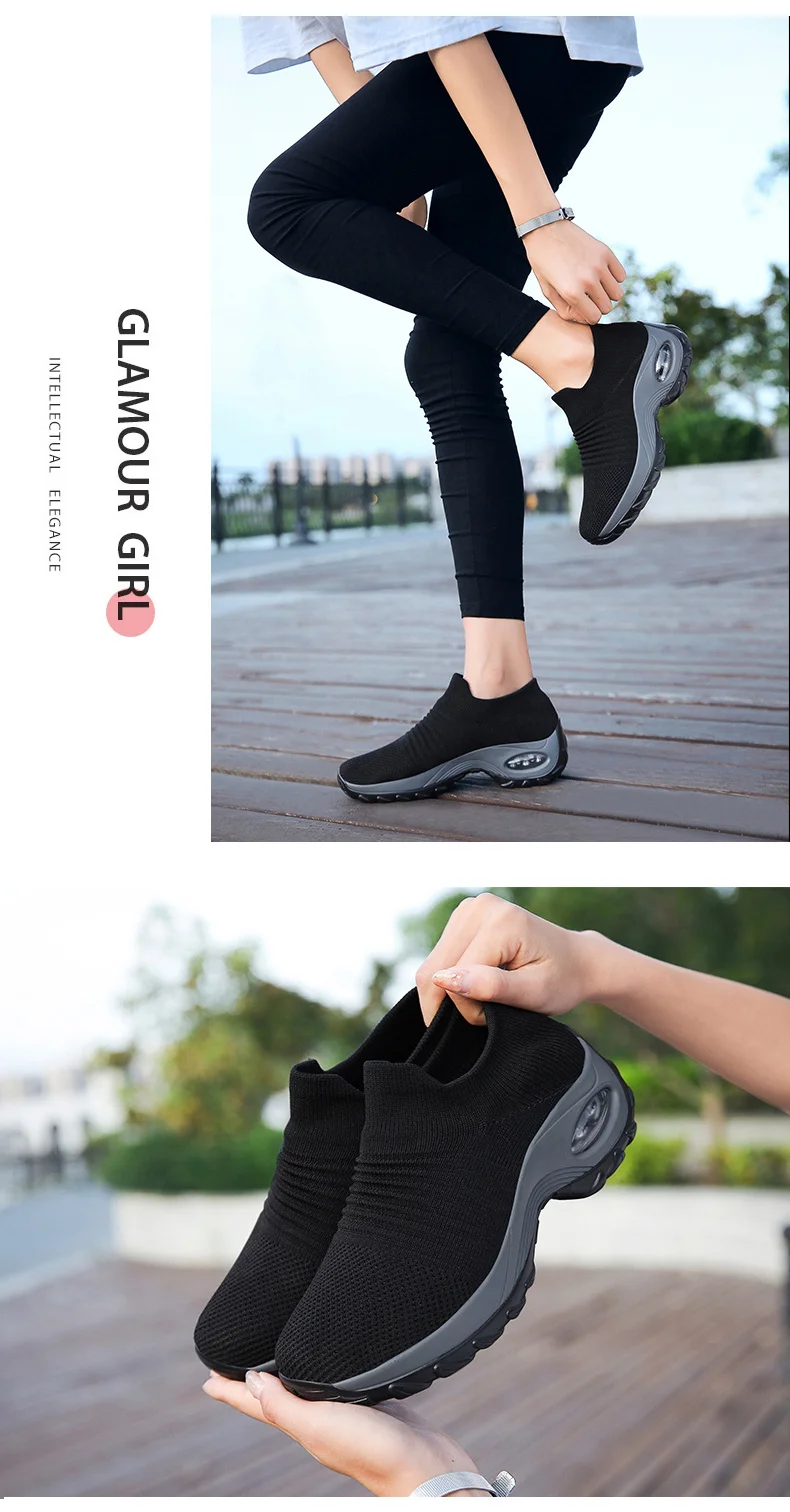 Беговые кроссовки женские, дышащие сетчатые, без шнуровки, на воздушной подушке, спортивная обувь для бега в тренажерном зале, кроссовки на платформе