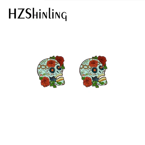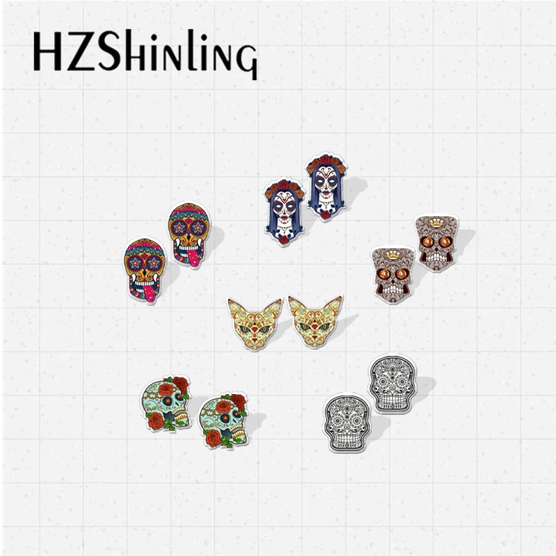 2021 Новое поступление, граффити-узоры в виде сахарного черепа, черепа на Хэллоуин, ручная работа, эпоксидные акриловые серьги-гвоздики