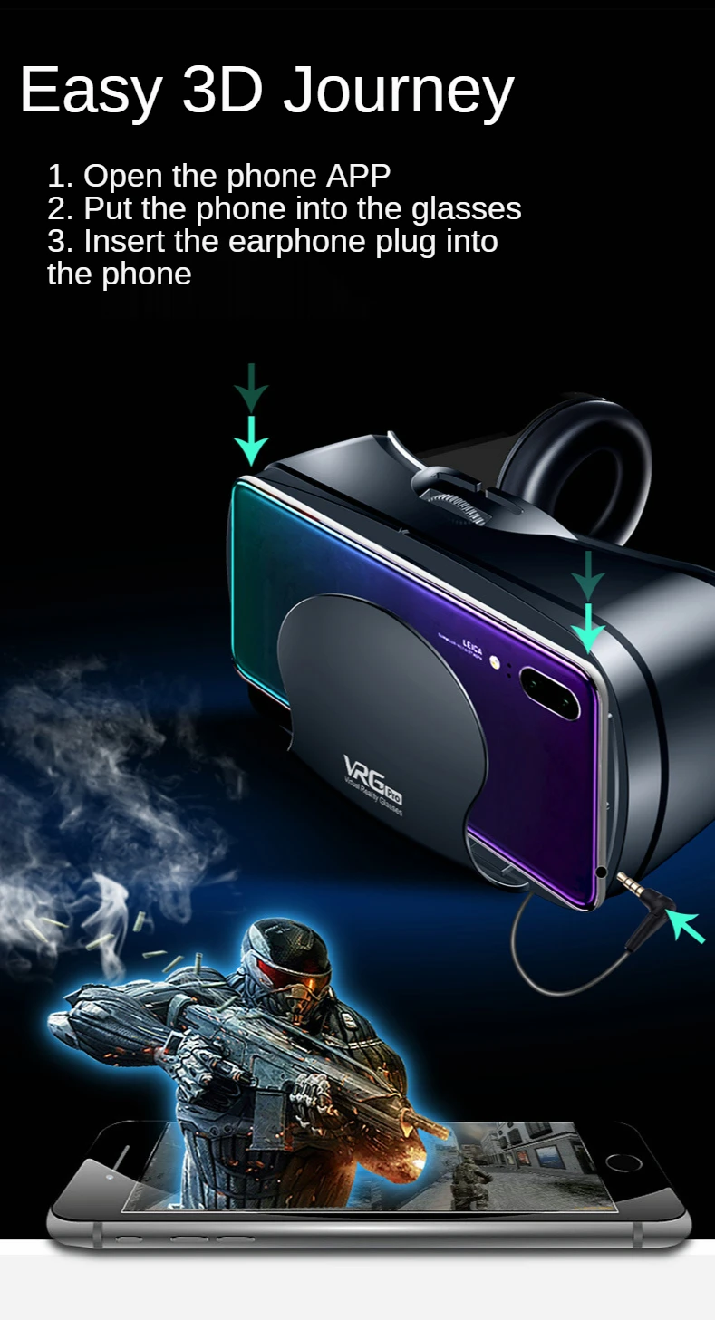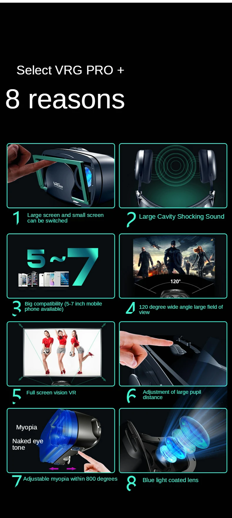 Аудиовизуальная версия VRGPro, большие встроенные Очки виртуальной реальности для 3d-кинотеатра мобильный телефон