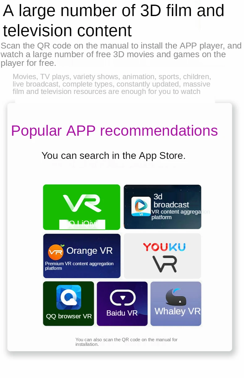 1.★Эта модель представляет собой встроенные Очки виртуальной реальности с высоким качеством звука и стабильным качеством.2.★Используя Отделяемый для изготовления обуви больших рамка экрана], больших и малых экранов телефонов доступны (максимальная поддержка для детей в возрасте от 7 дюймов сенсорный экран телефонов).3.★120 градусов широкоугольный объектив принимается для лучшего погружения.4. Близорукость в пределах 800 градусов может быть просмотрена невооруженным глазом5. Совместимость с 5 ~ 7 дюймовыми мобильными телефонами6.★Полное видение экрана, нет больше эффекта черной коробки при просмотре фильмов,7.★Эта модель хорошего качества, стабильного качества и отличного опыта. Высококачественная упаковка значительно снизит проблемы после продажи.