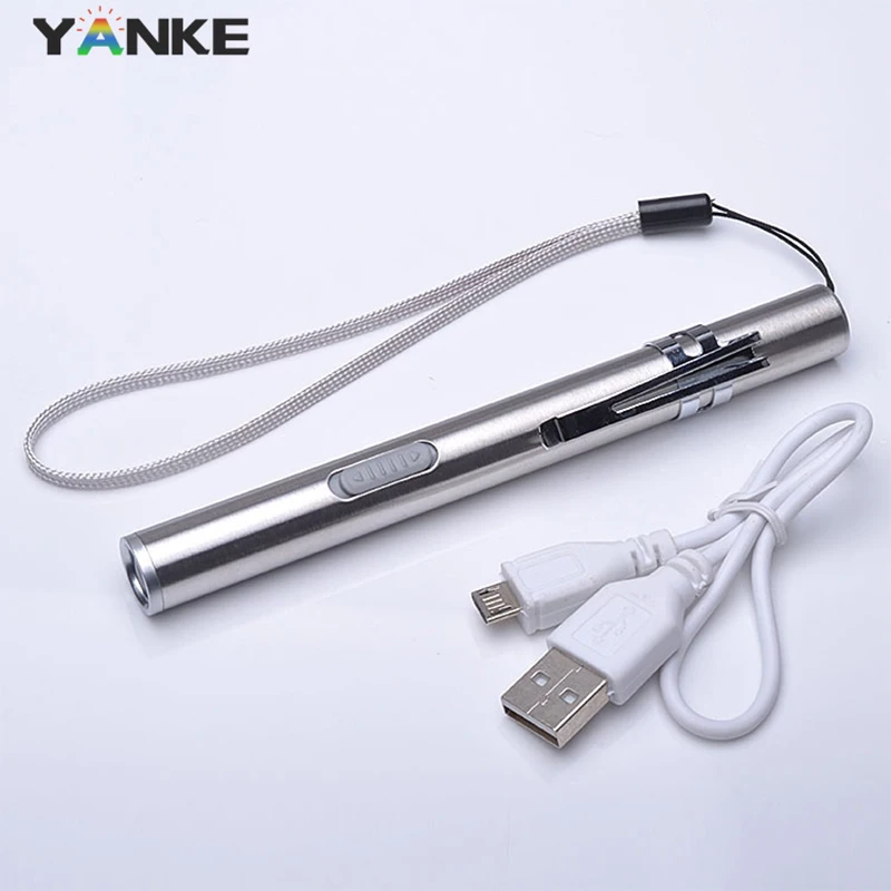 Мини-фонарик для медсестры, светодиодный фонарик, медицинский ручной фонарь, USB-зарядка, зажим из нержавеющей стали, аварийный портативный фонарь
