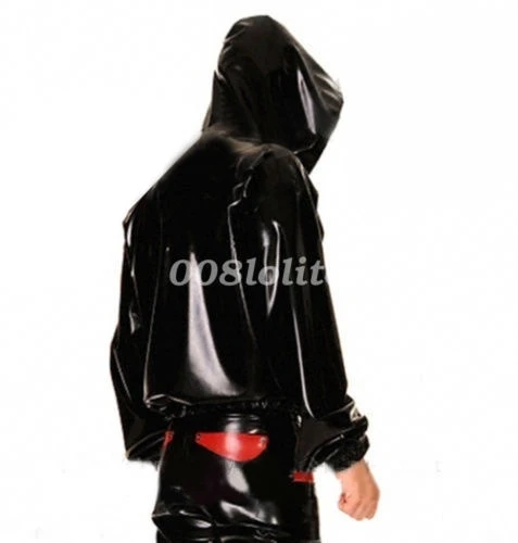 Куртка мужская спортивная черная с капюшоном, из латекса и резины, размер XXS-XXL