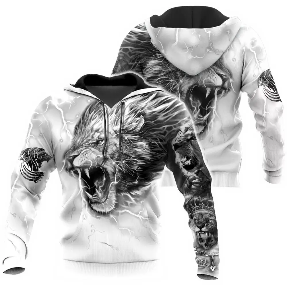 Модные осенне-зимние толстовки с капюшоном Лев татуировки 3D во все...
