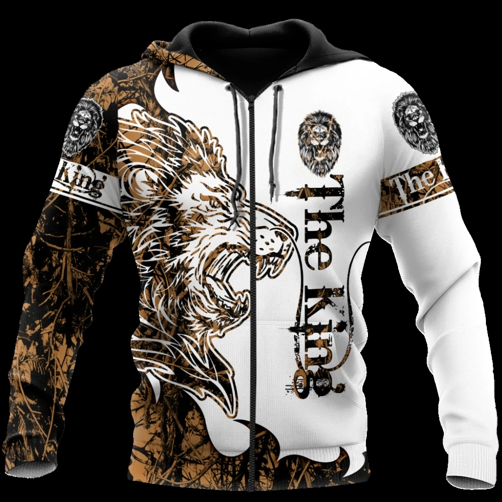 Осенние модные брендовые толстовки с капюшоном с 3D-принтом льва, мужской свитер унисекс, пуловер на молнии, повседневная куртка