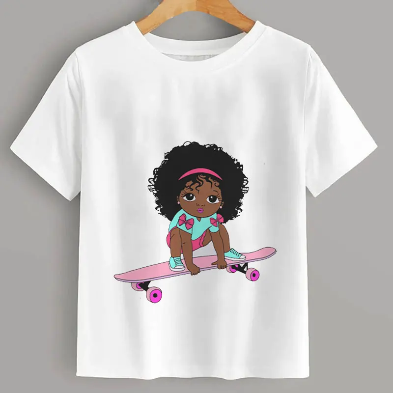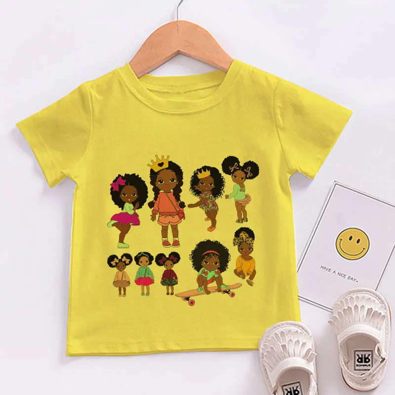 Детская футболка с принтом меланина, розовая футболка с принтом в виде принцессы, летний и зимний сезон, 2021