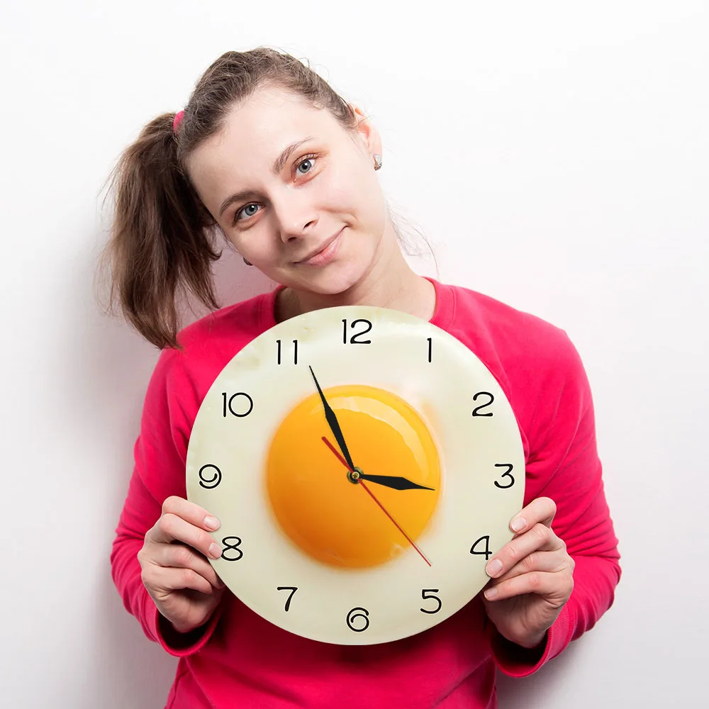 Домашний декор, 3D дизайн, настенные часы для завтрака и еды, декоративные настенные часы для кухни с жареным яйцом, декор для столовой, бесшумные настенные часы
