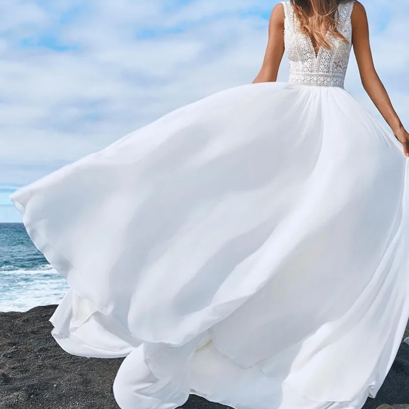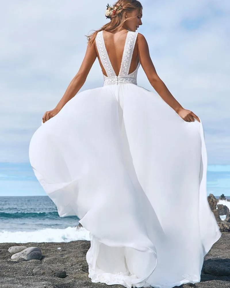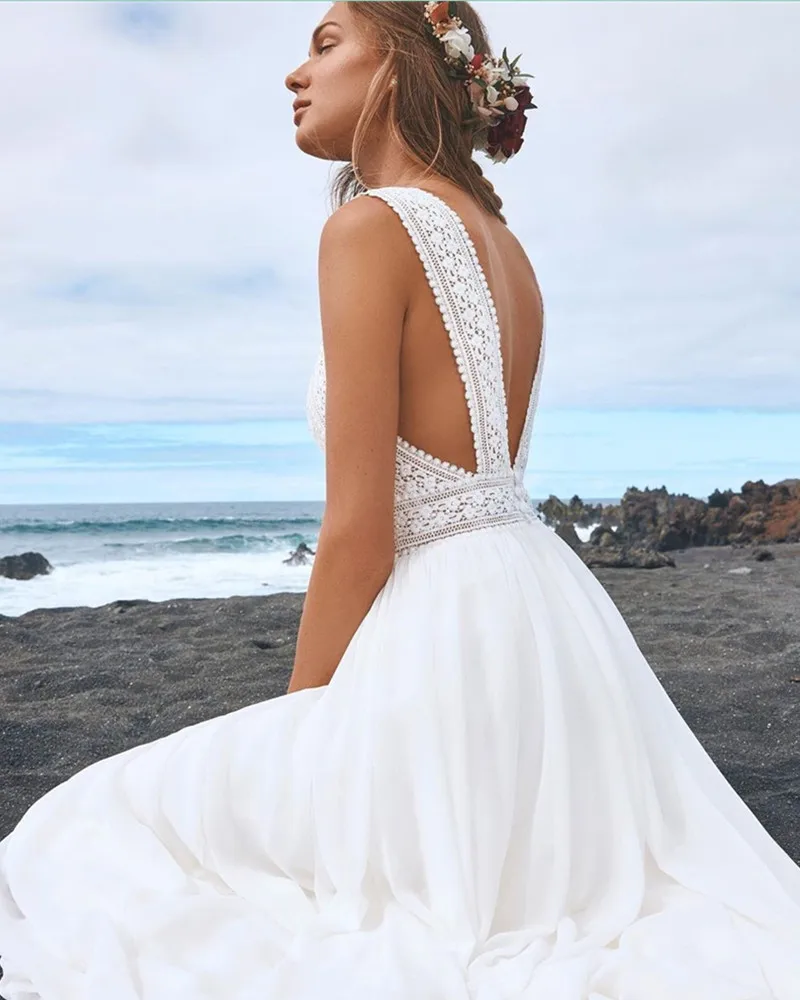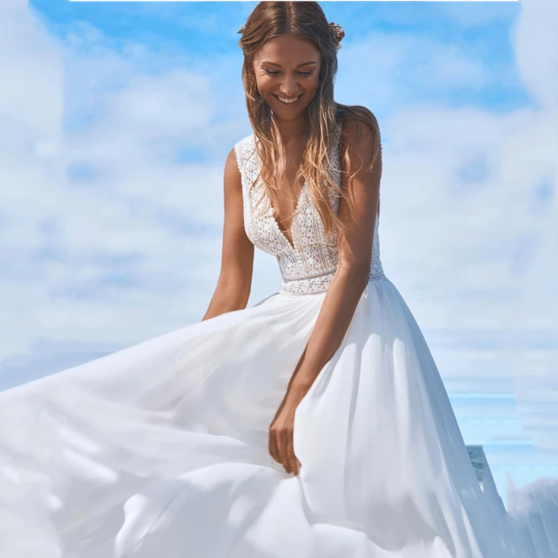 Пляжные свадебные платья, кружевные аппликации, сексуальное богемно...